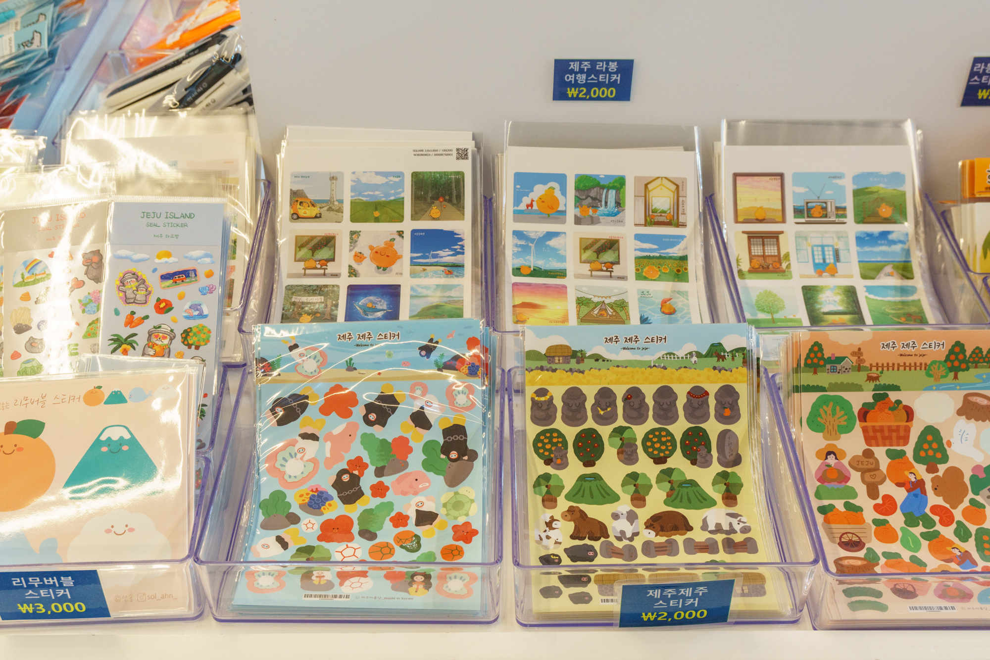 20~30대 여행객에게 인기가 많은 제주도 스티커도 종류가 다양하게 있었다. 아이들의 장난감으로 활용되고 잇으며 한 장에 2,000~3,000원이면 구매할 수 있고 하나같이 예뻐서 종류별로 하나씩 소장하고 싶을 정도였다.