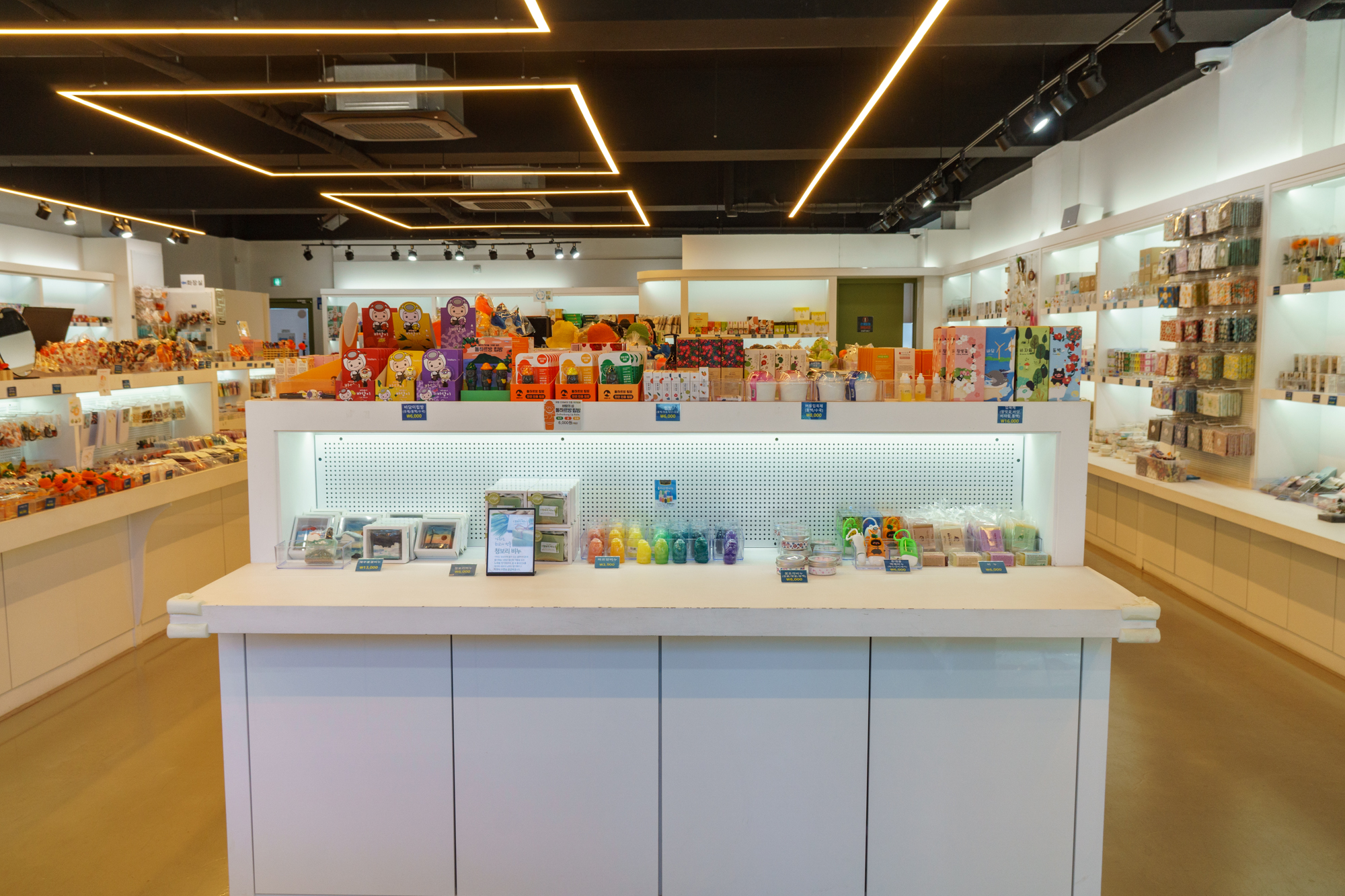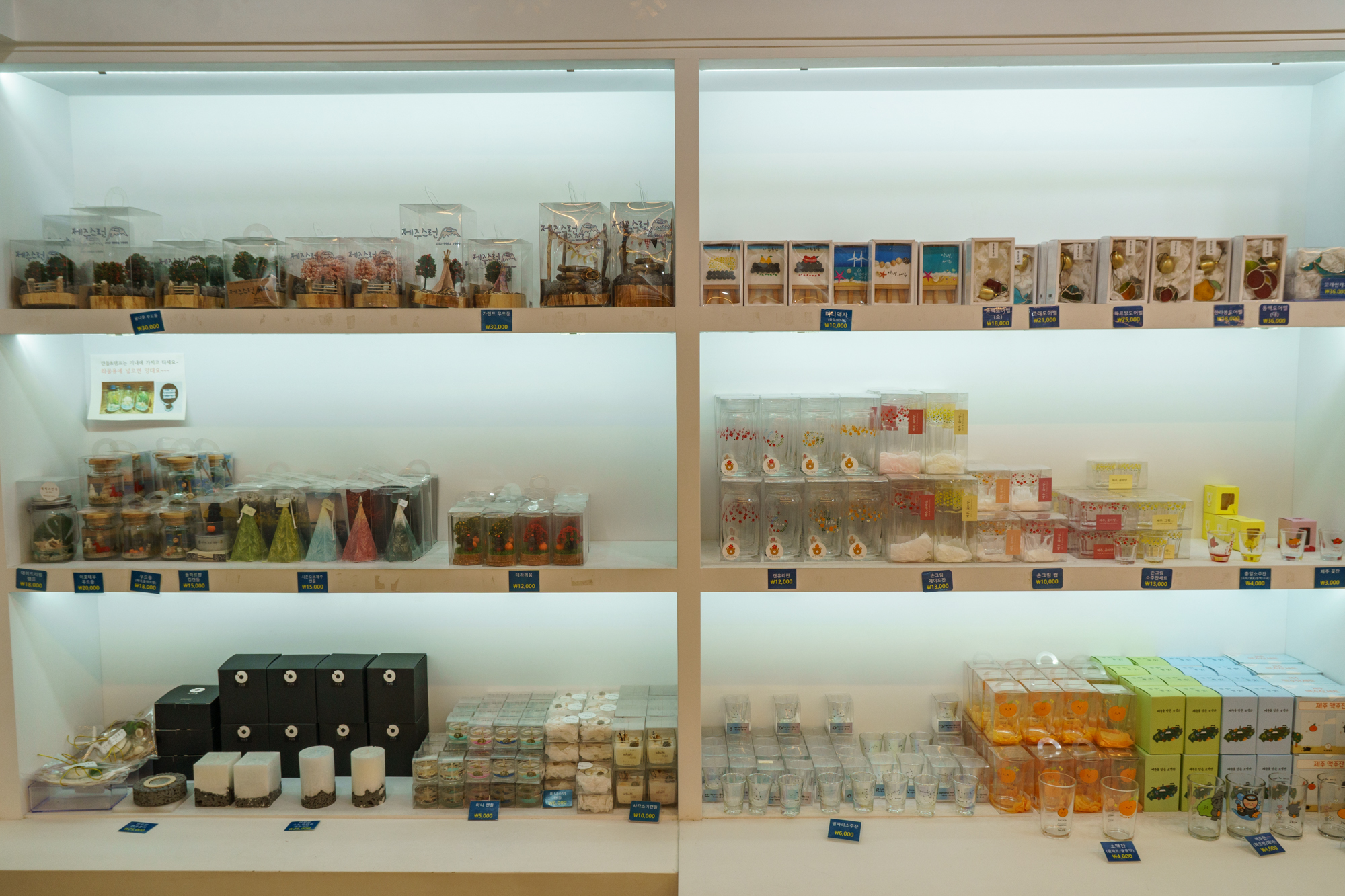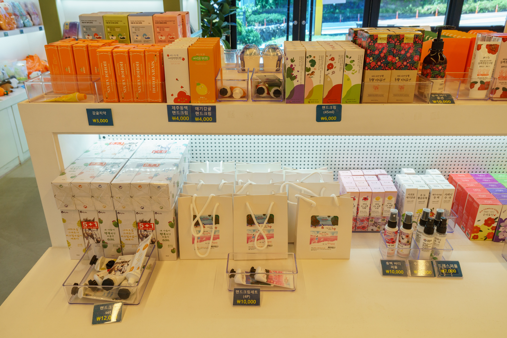제주 풍경, 꽃, 동물을 감성 가득한 디자인으로 만들어진 문구류, 인테리어소품, 주방용품, 악세사리 외에 일상생활에서 사용하기 좋은 디퓨저와 향수도 있으며 전통주부터 먹거리 간식까지 매장 한곳에 다 있으며 주차장도 넓고 택배도 이용할 수 있기에 제주도에서 기념품 사기 좋은 곳을 찾는 분들에게 추천하고 싶다.