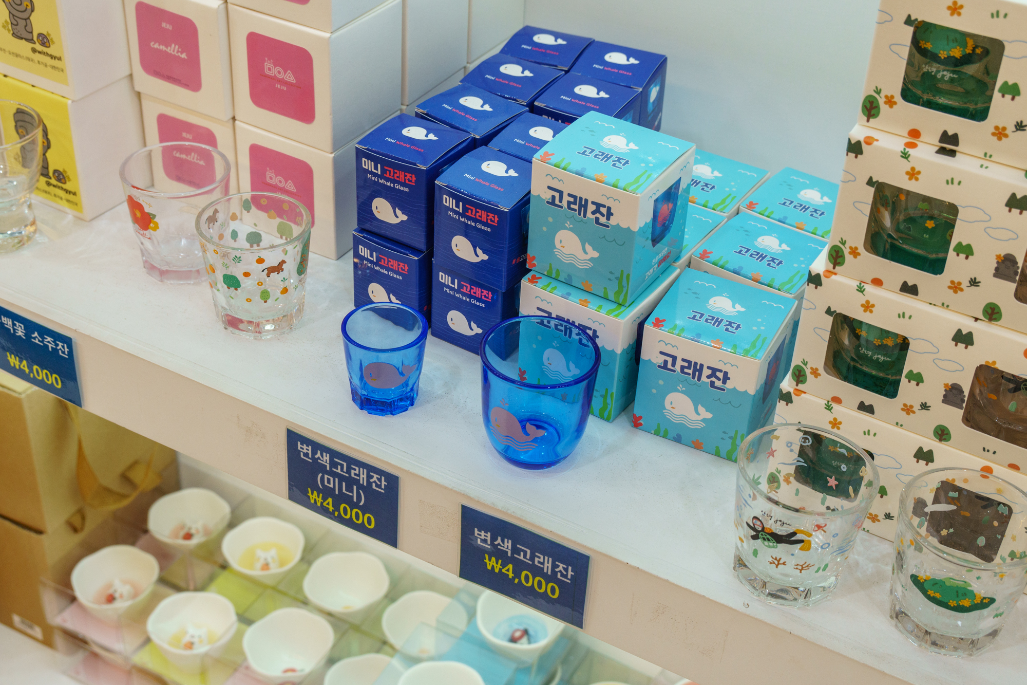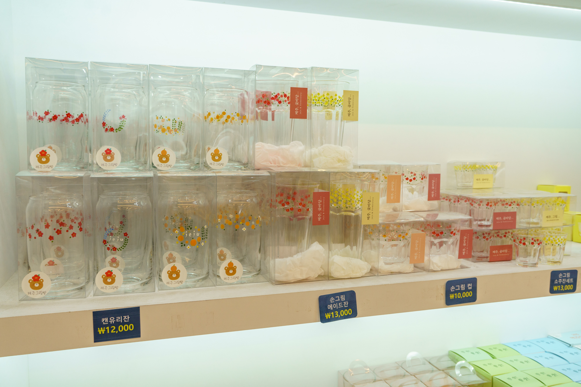 유리와 도자기로 만들어진 소주잔과 머그잔 또한 여러 패턴을 담아냈으며 낱개로 하나씩 박스에 포장도 되기에 파손 걱정 없이 가져갈 수 있다.