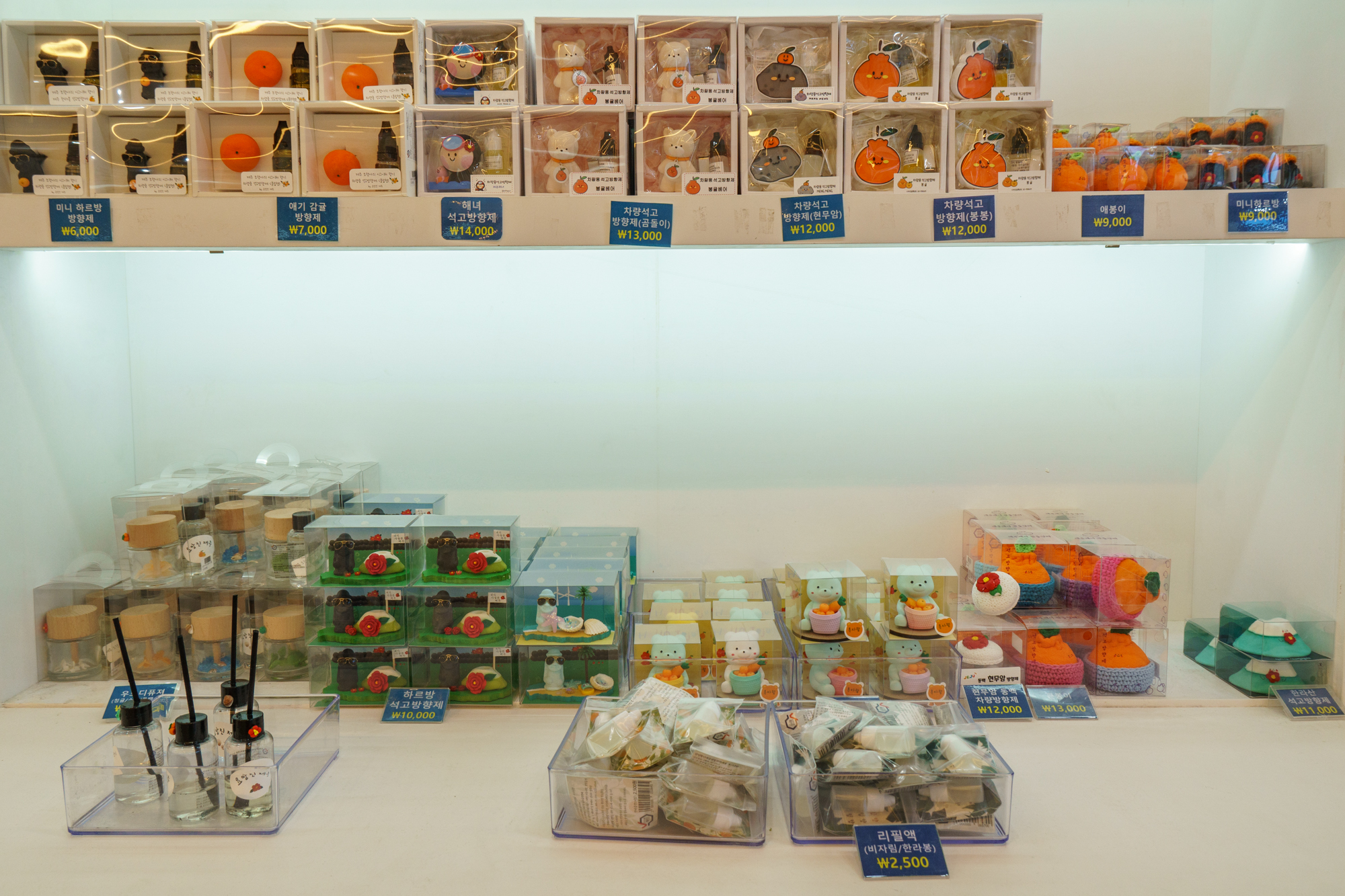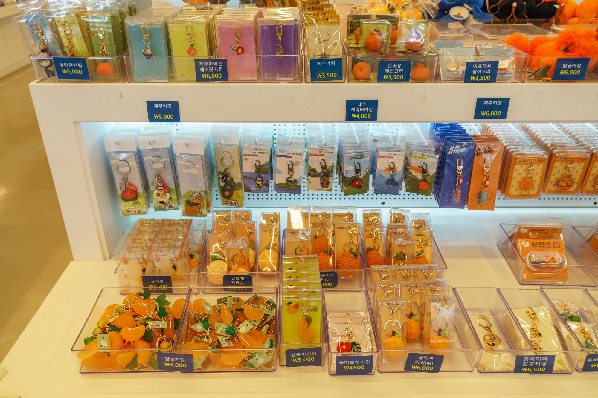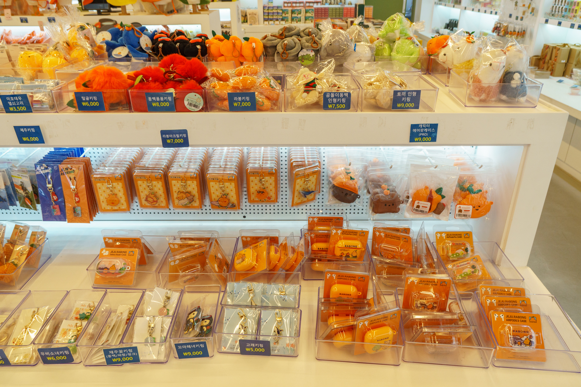 그다음 코너에는 한라봉을 캐릭터로 표현하여 만들어진 열쇠고리 키링부터 에어팟, 갤럭시버즈케이스, 스마트폰 톡 등이 있으며 하나같이 아기자기하고 귀여운 상품으로 제작되어 있어 제주 서귀포 소품샵에 간다면 하나씩 구경해봐도 좋다.