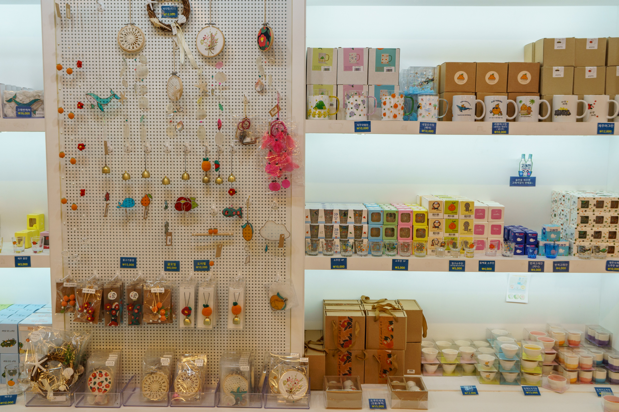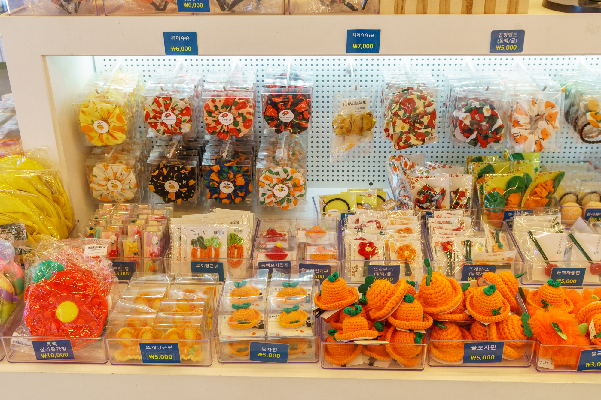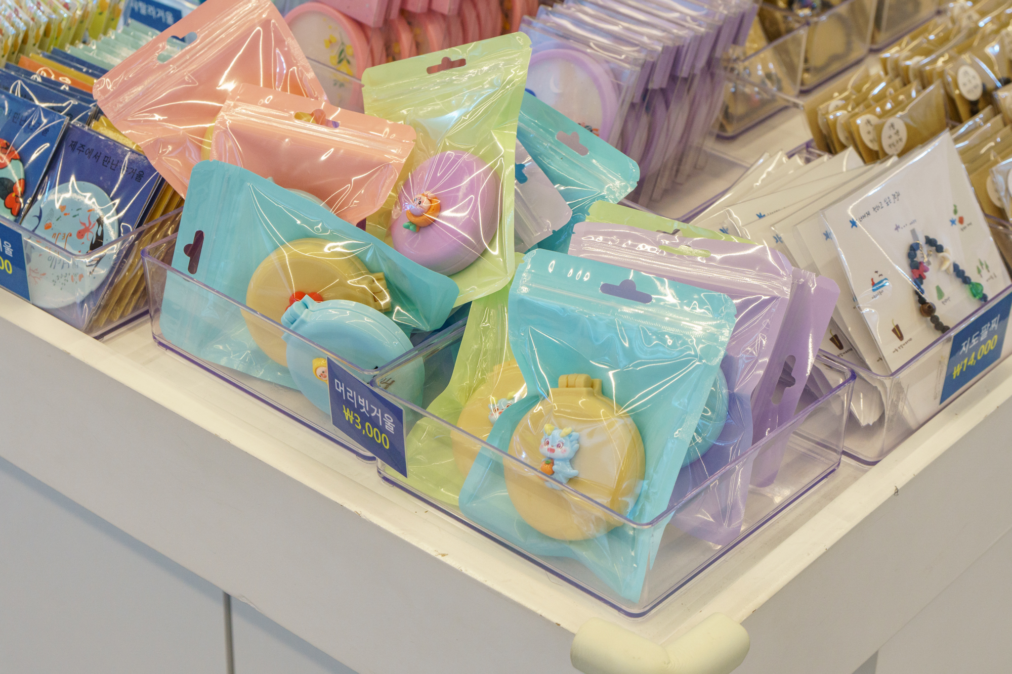 악세사리로는 아이들이 착용하기 좋은 헤어슈슈, 곱창밴드, 당근핀, 귤모자핀 등도 있으며 일러스트와 캐릭터를 담아낸 손거울도 원하는 디자인으로 골라 기념품으로 살 수 있다.