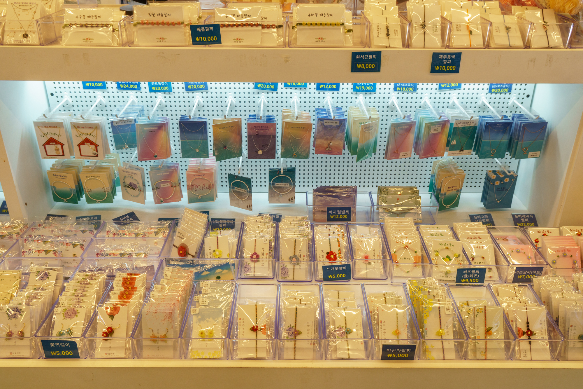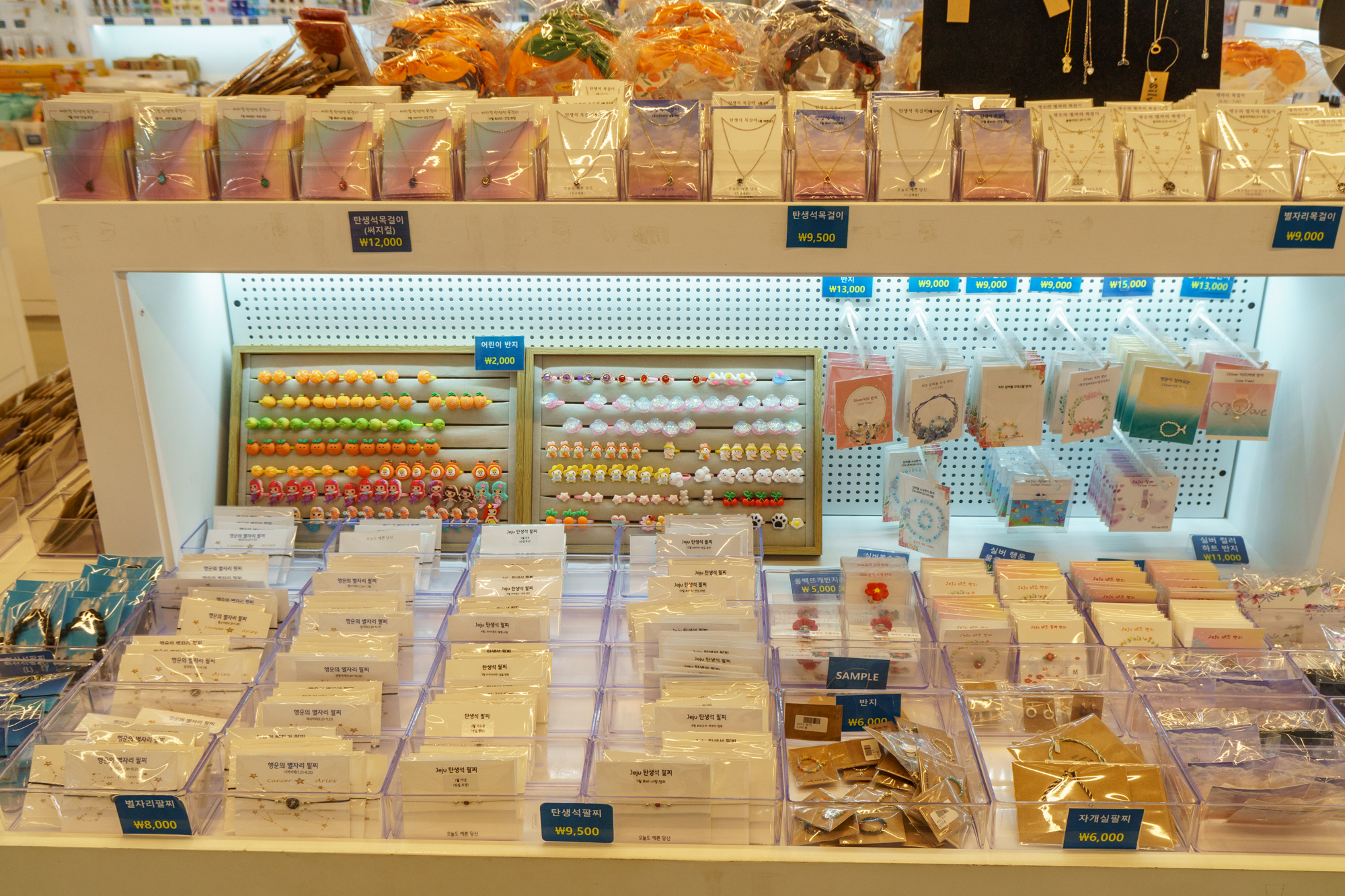 카운터 앞에는 여름철 패션 악세사리로 착용하기 좋은 귀걸이, 반지, 목걸이, 팔찌, 발찌 등이 있었는데 제주여행을 하면서 만날 수 있는 꽃과 동물 모양으로 제작되어 있다는 점에서 눈길을 끌었다.