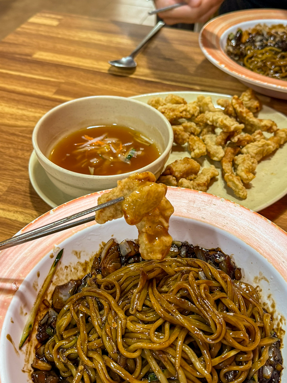 제주 현지인 추천 맛집 애월 왕서방에 갔던 날에는 함께 방문한 지인은 간짜장을 주문했고 나는 왕서방짜장 순한맛과 함께 미니 탕수육을 시켜서 점심식사로 먹었다.