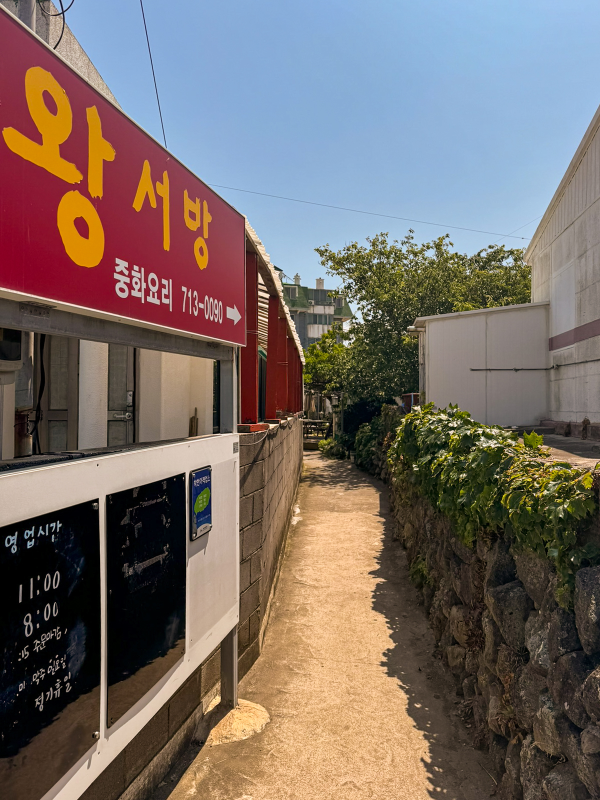 제주 현지인 추천 맛집 애월 왕서방은 위 사진에 보이는 골목길(올레길)을 따라 안쪽으로 들어가야 된다. 식당에서 식사를 할 수 있을 뿐만 아니라 포장도 가능했는데 이날 갔을 때도 계속해서 포장 손님이 방문할 만큼 인기가 높았다.