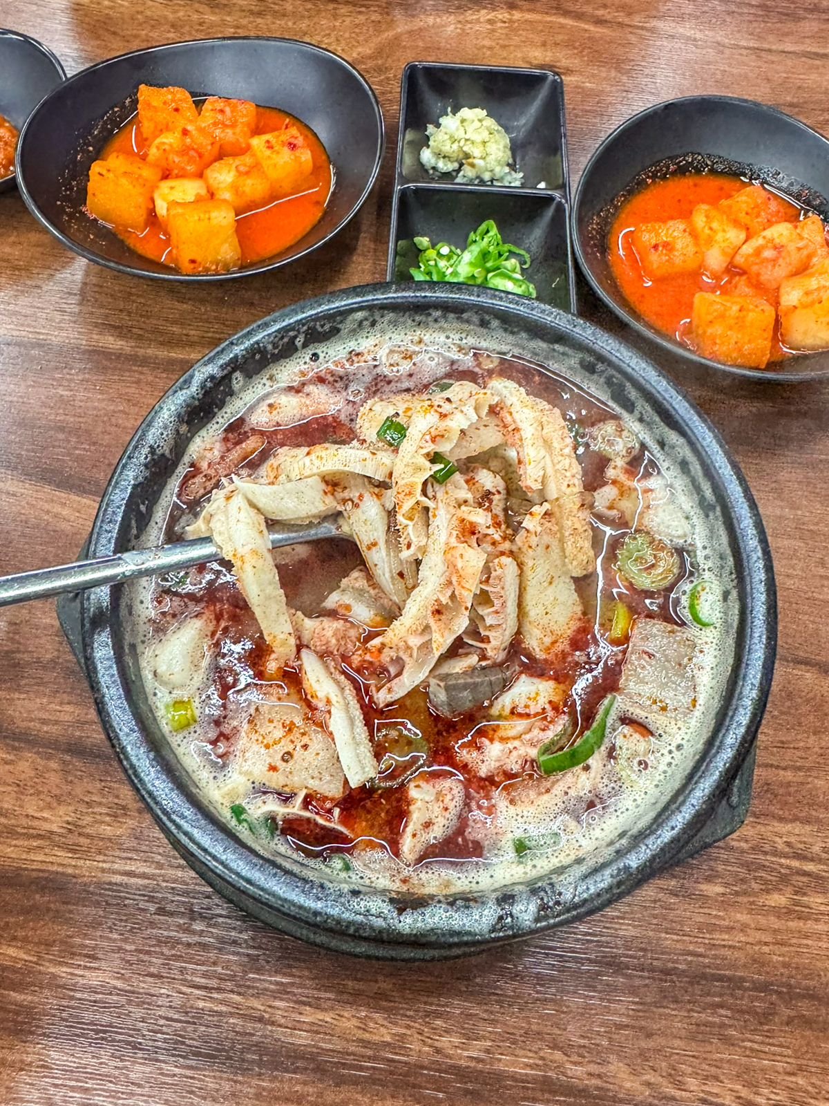 제주 함덕해수욕장을 구경하고 이전부터 가보고 싶었던 함덕골목 본점에 처음 방문해 내장탕을 먹었다. 성시경 유튜브 채널 먹을텐데에서 소개된 이후 사람들이 계속 찾고 있어 약 18~20분 정도 기다린 끝에 먹었는데 이전에 갔던 제주 산지해장국과 비슷했으나 전체적인 재료부터 소스, 깍두기는 산지가 더 나았다.
