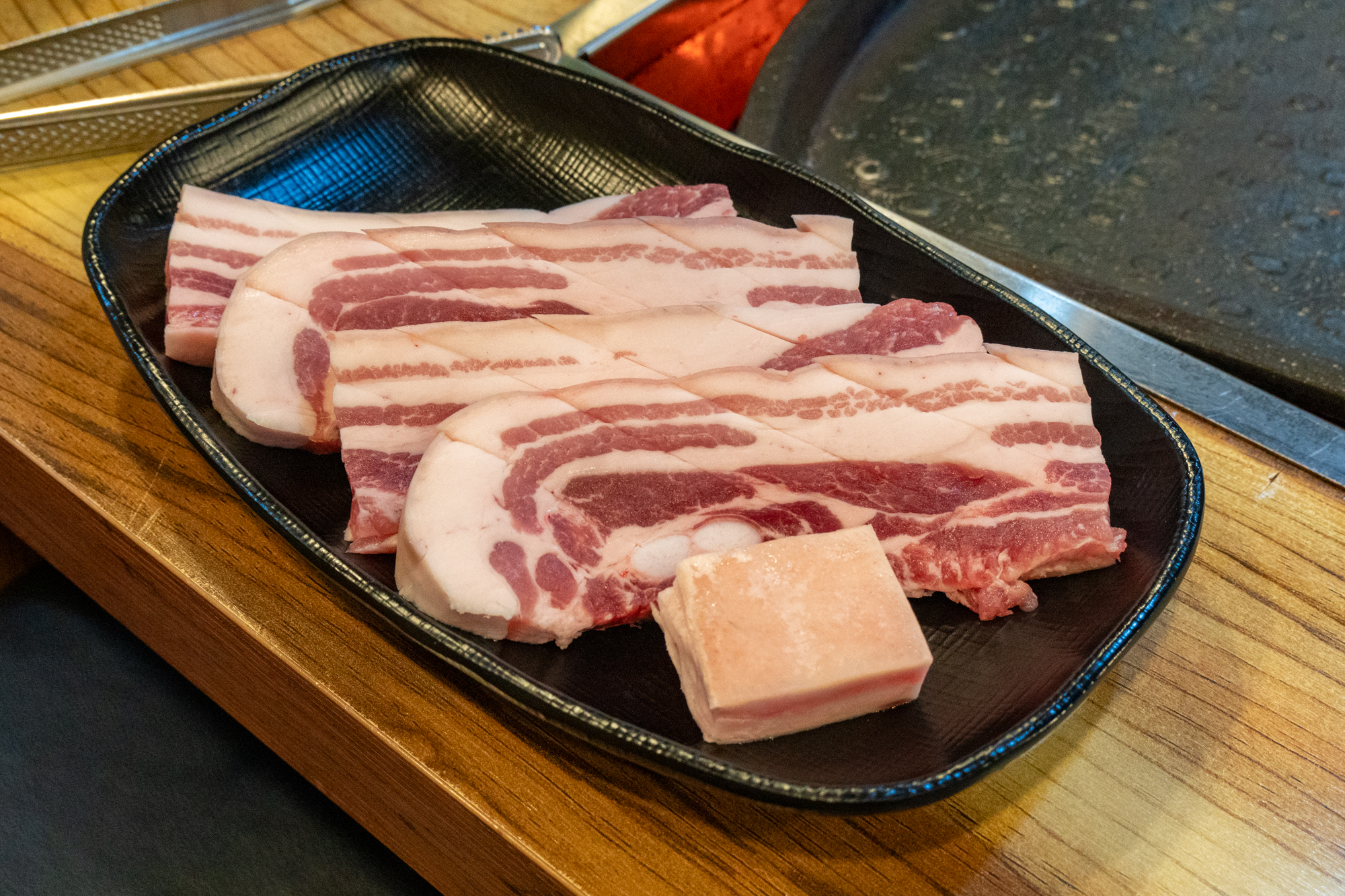 흑돼지 오겹살, 목살 외에 LA 양념갈비와 두루치기, 전골 메뉴도 있으며 고기를 주문하면 라면, 찌개, 소주에 타먹는 백년초까지 나와 전체적으로 가성비가 좋았고 반찬 또한 하나같이 맛있었다.