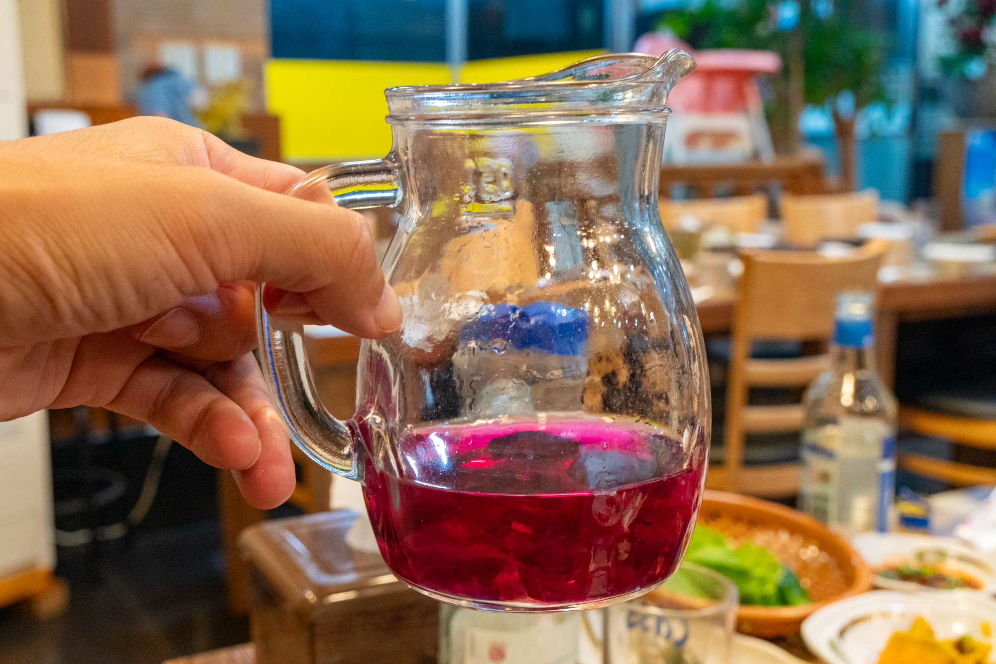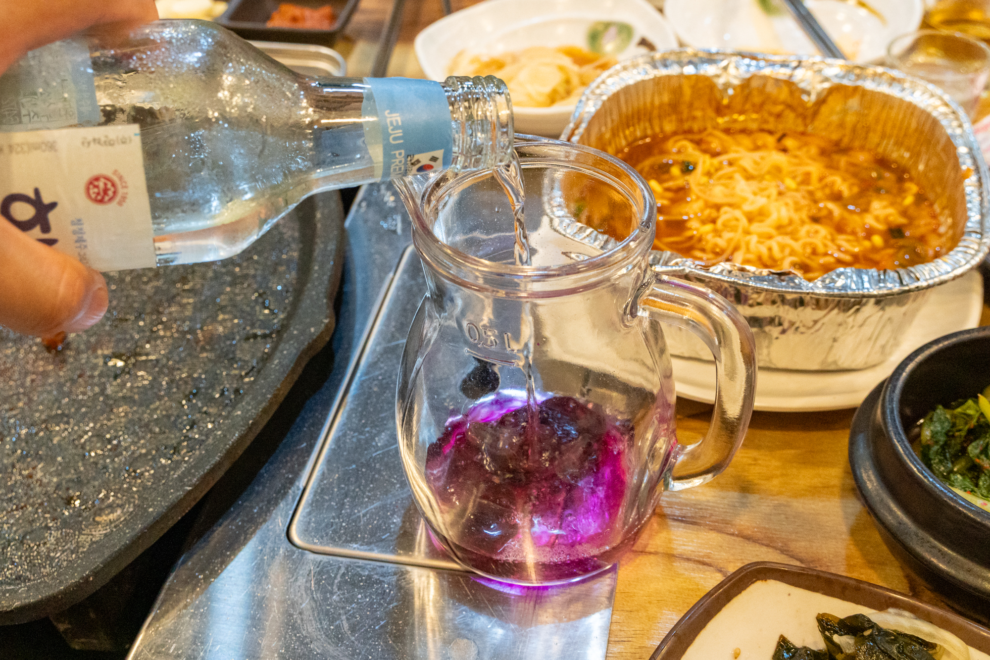 제주공항 연동 맛집 황금돈가에는 백년초가 들어간 빈병이 서비스로 나온다. 주문한 소주를 빈병에 담으면 사진에 보이는 것처럼 핑크빛 색상으로 바뀌는데 몸에 이로운 성분이 있는 만큼 맛은 물론 건강도 동시에 챙길 수 있다.