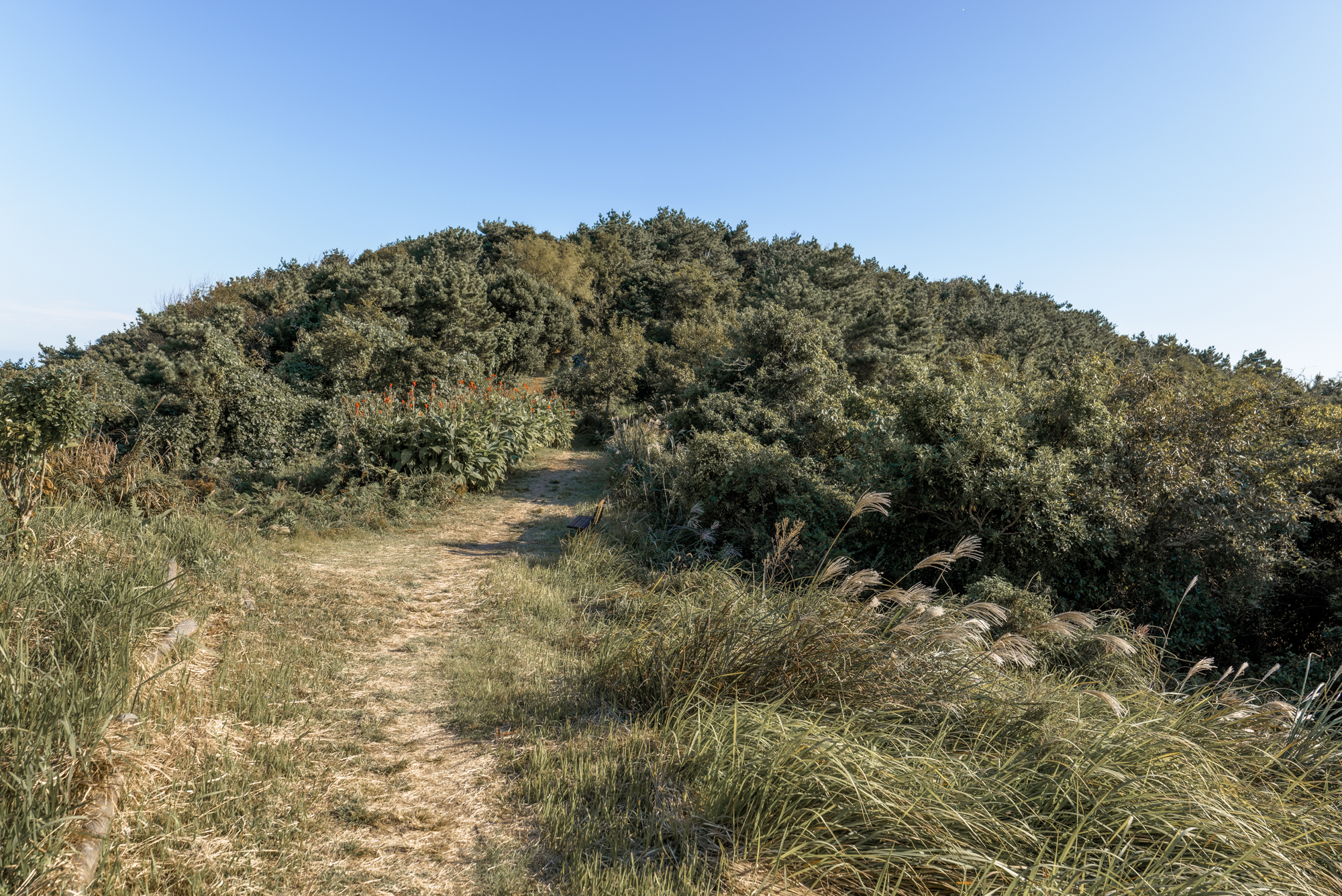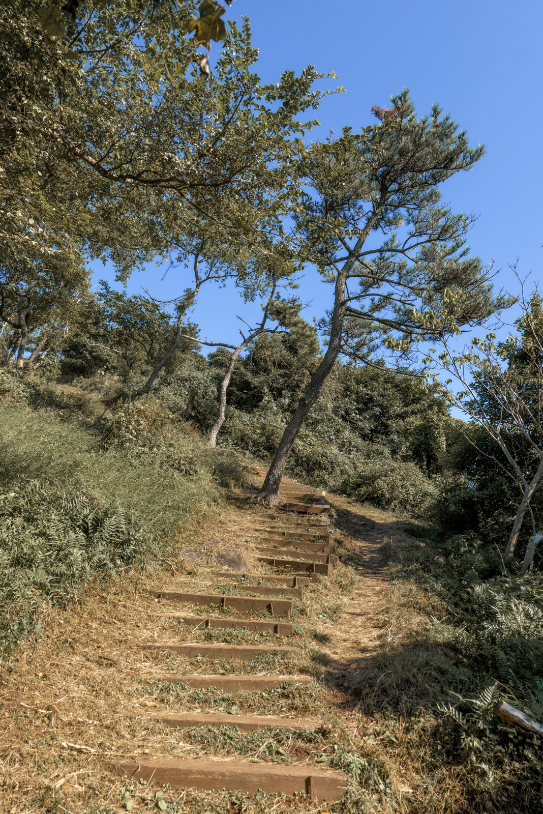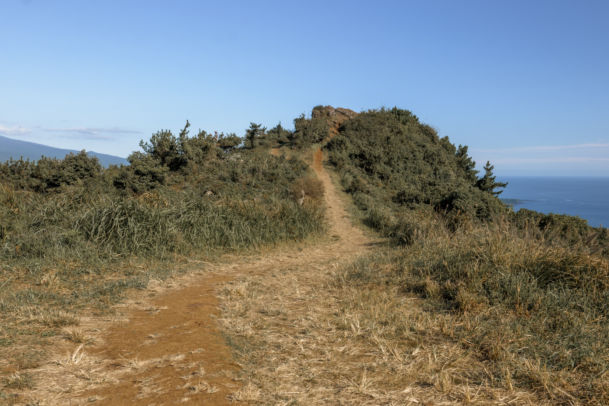 제주 군산오름 주차장에서 정상까지 올라가는 길은 약 5~7분 정도이며 경사가 높지 않아 힘들지 않게 도착할 수 있었다. 중간 지점에는 태평양전쟁 당시 지어진 일제 동굴진지가 있으며 오름 전체에는 총 9개의 동굴진지가 구축되어 있다.