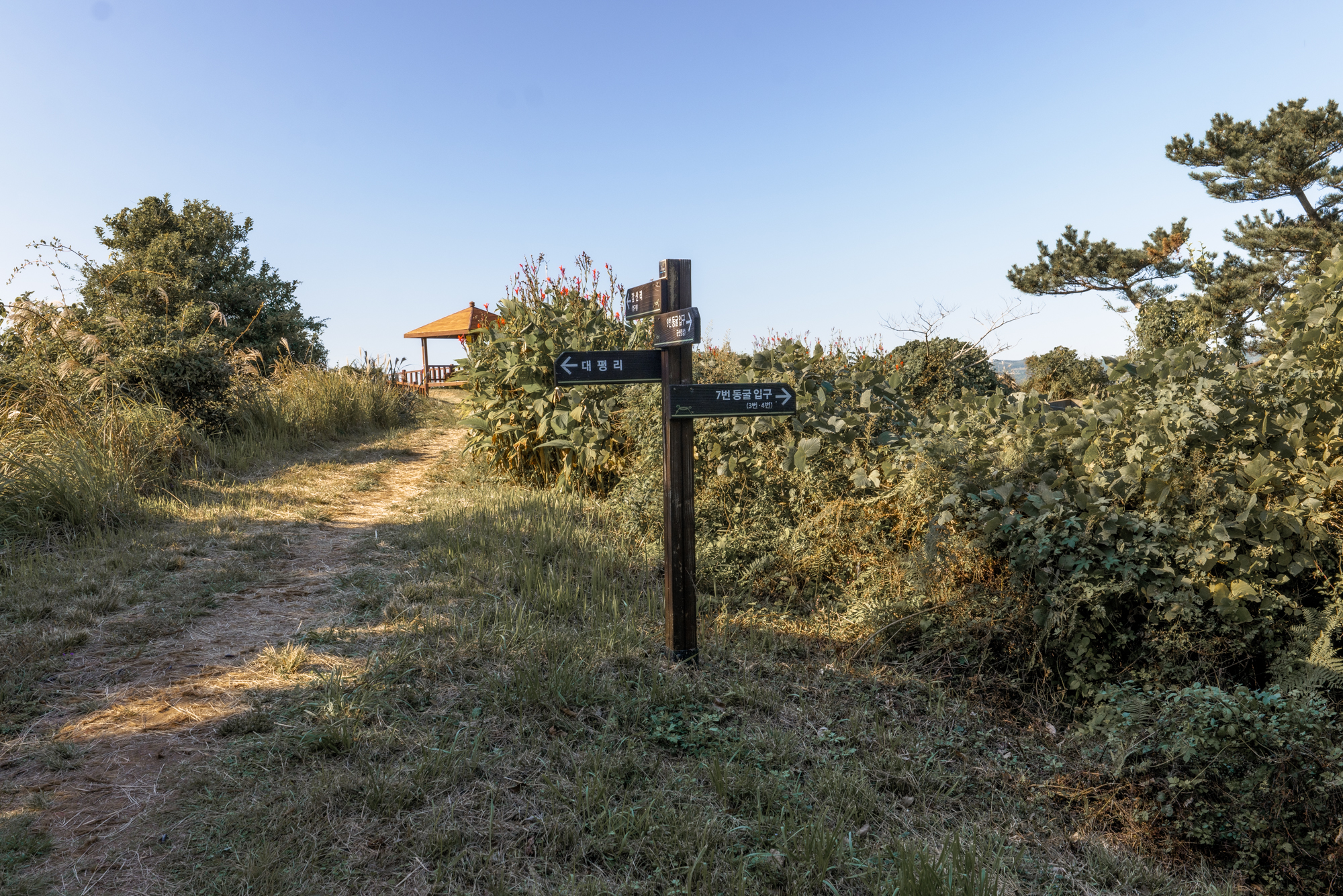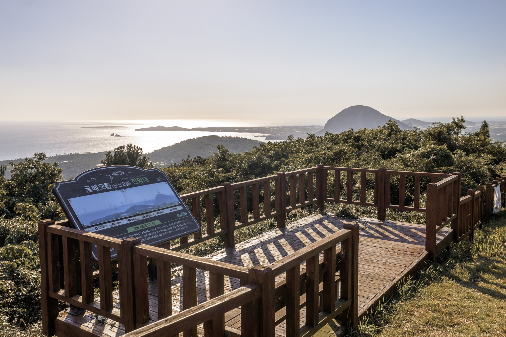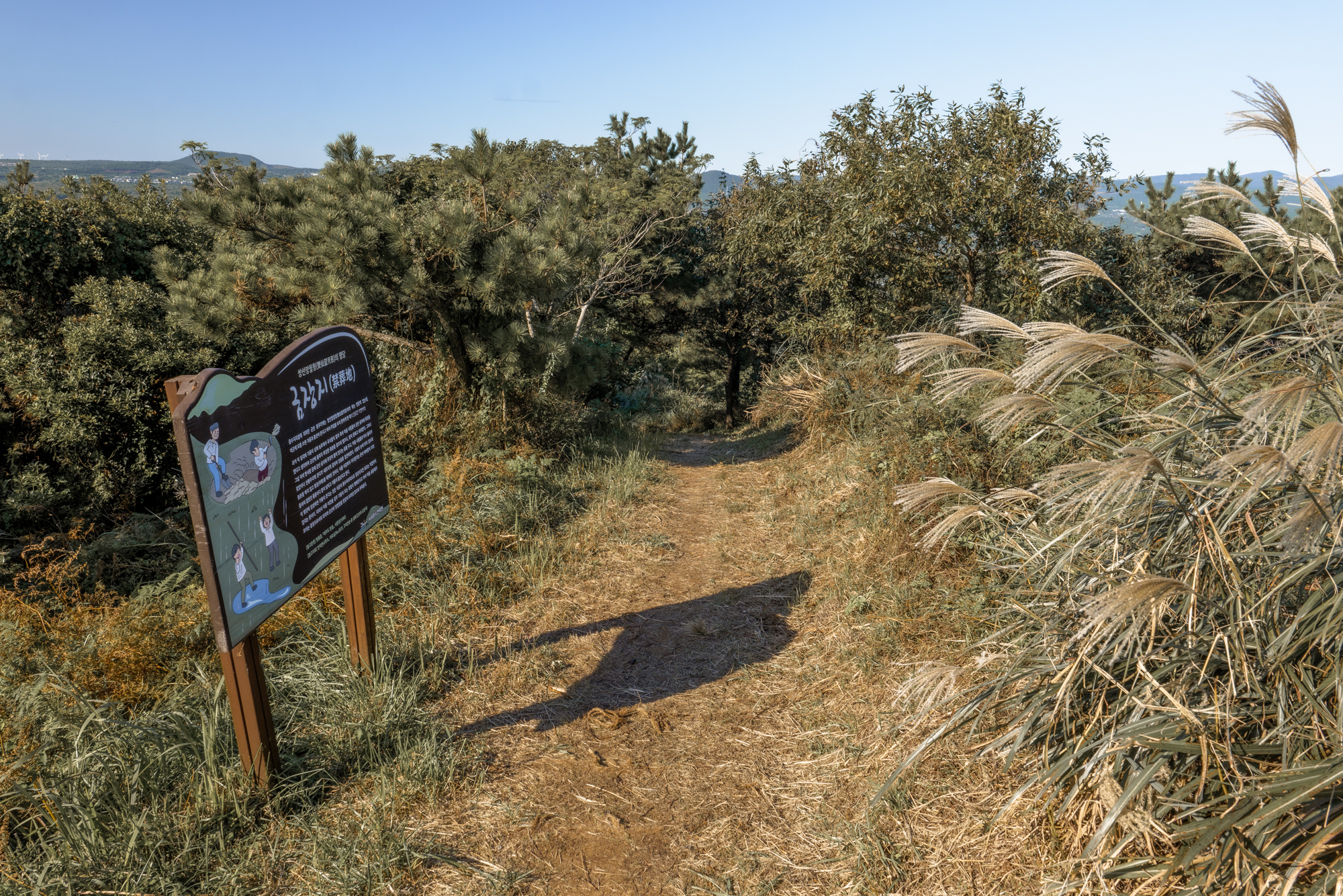 가을 제주도 가볼만한곳 제주 군산오름 주차장 정상에서 올레길 방향을 따라 걸으면 전망대와 함께 금장지라는 명당도 볼 수 있다. 금장지란 쌍선망월형의 명당이라 불리는 금장지는 무덤으로 쓰지 못하게 한 데서 지어진 지명으로 위 사진에 보이는 장소에는 묘지가 하나도 없었다.