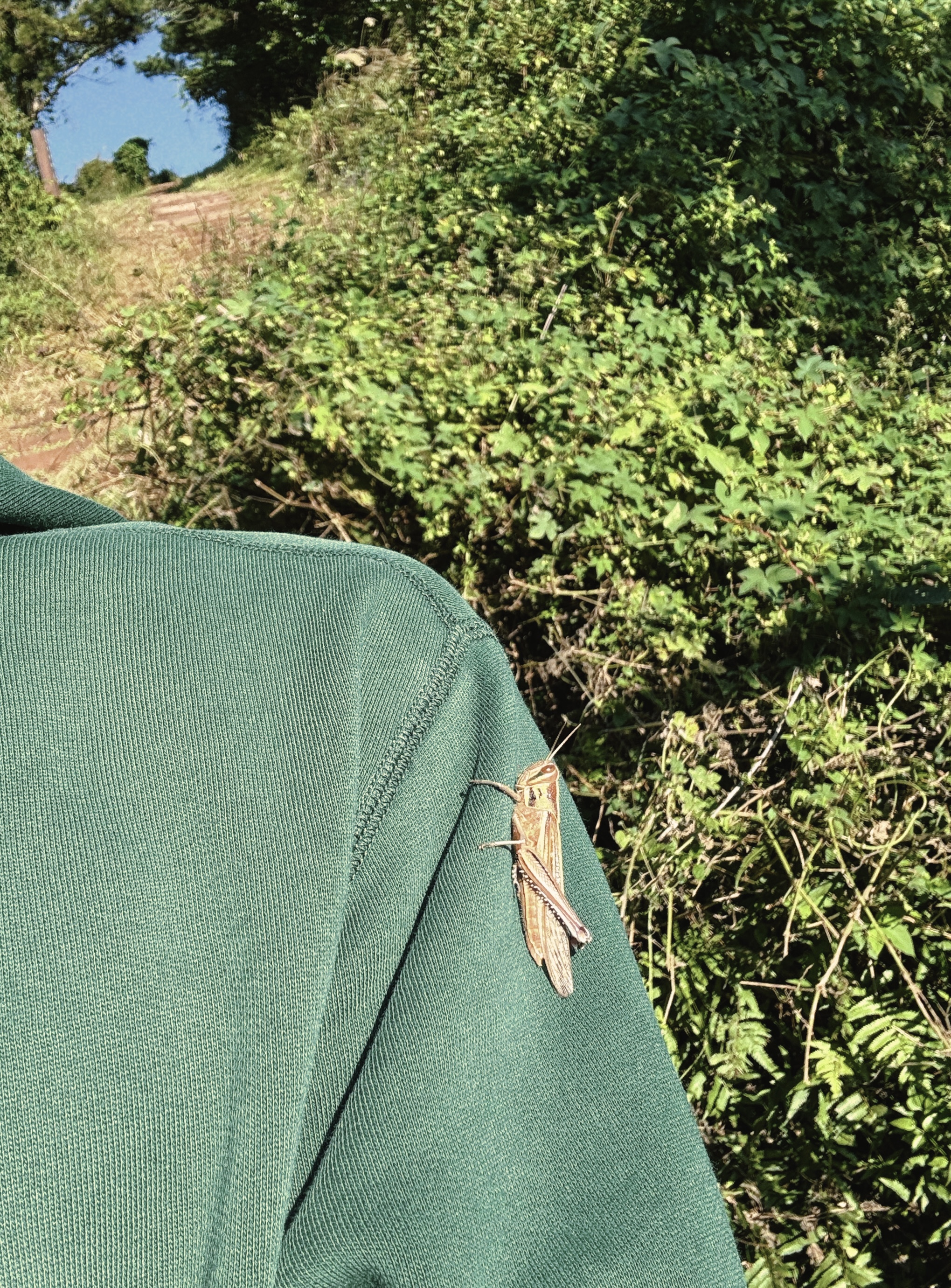 오름을 따라 내려오는 길에 우연히 벌레 한 마리가 옷에 붙어 있어서 기념으로 사진을 담아봤다. 금세 다시 날아갔는데 자연 명소인 만큼 벌레나 뱀이 있을 수 있기에 방문 전 미리 참고해보자.