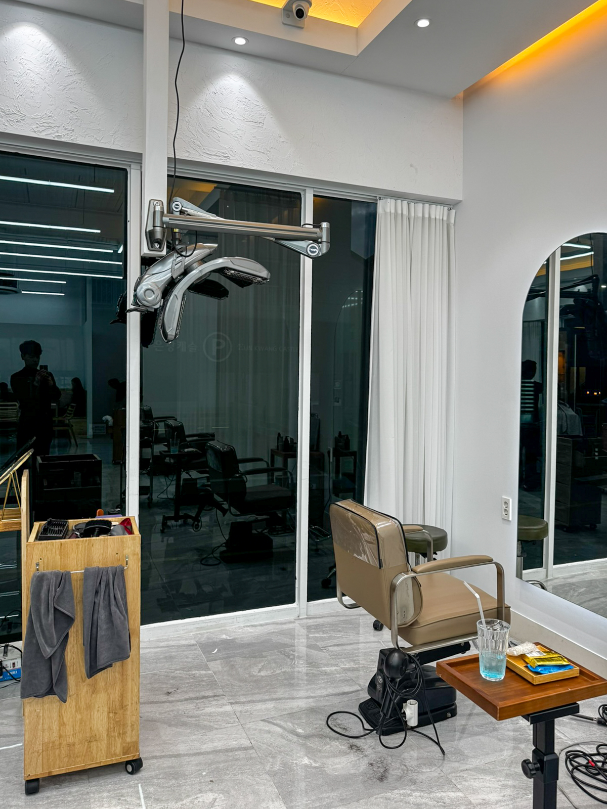 제주 남자 미용실 아우린헤어는 노형동 미용실 중에서도 고급스러운 분위기를 자랑했으며 샴푸와 두피관리를 하는 전동 샴푸대 또한 푹신푹신해서 마음에 들었다.