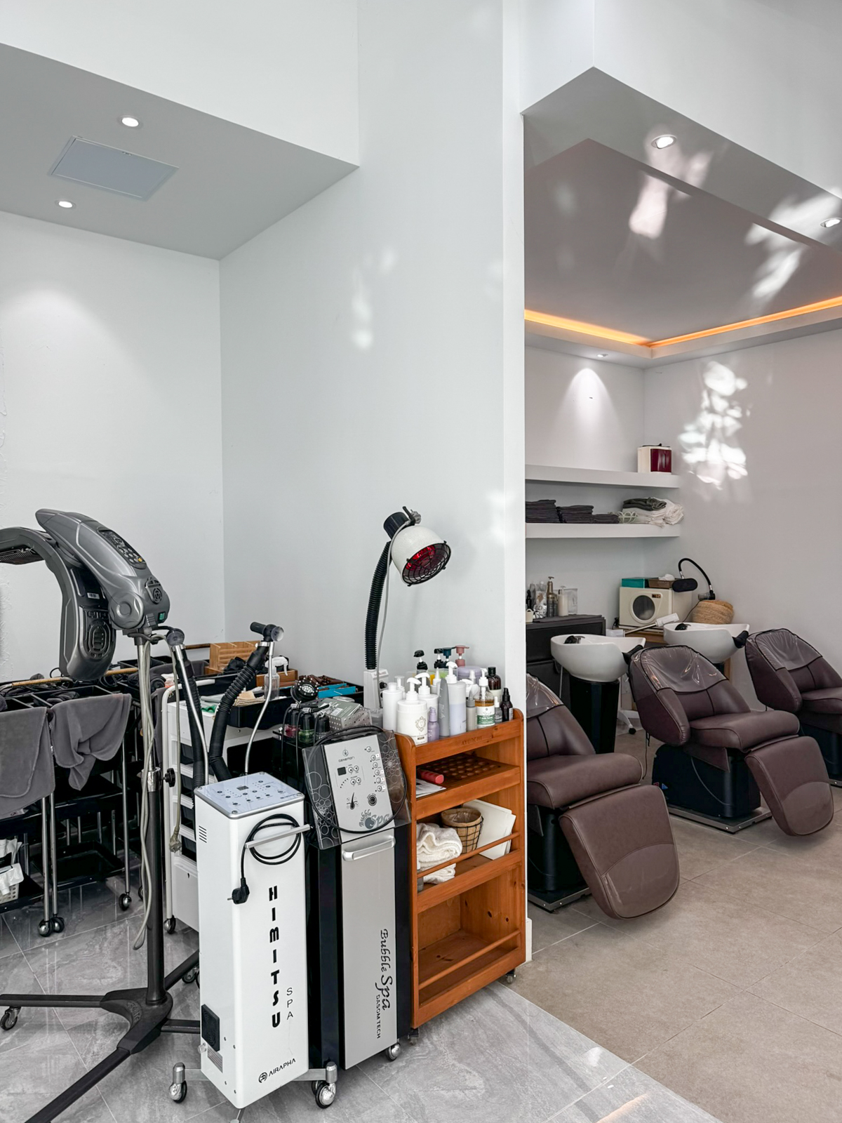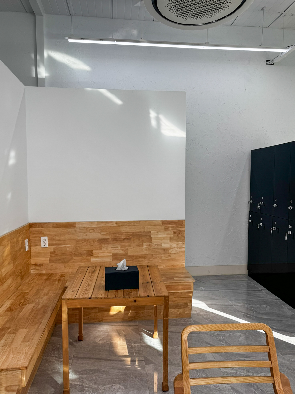미용실 내부에는 미용을 하기 전 앉을 수 있는 휴식 공간도 마련되어 있으며 옷가지나 가방 등을 보관할 수 있는 보관함도 넓게 마련되어 있었다.