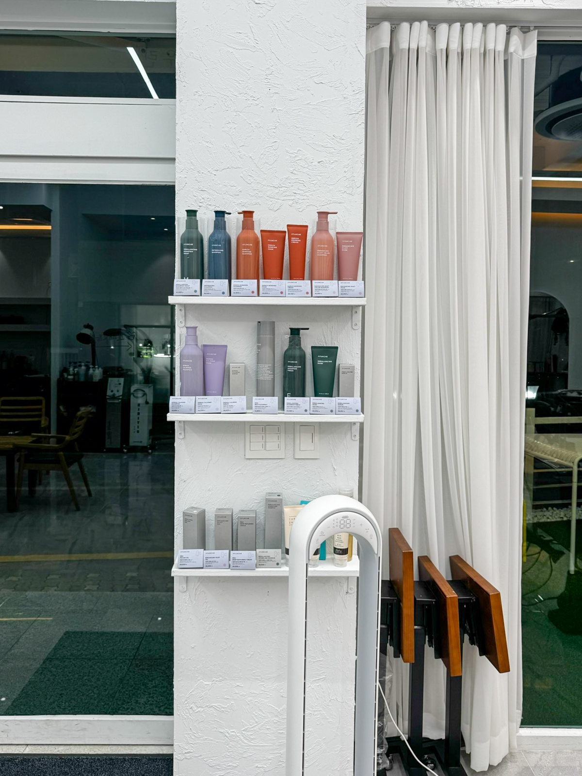 또한 한쪽 공간에는 샴푸, 린스, 트리트먼트 외 평소 헤어스타일을 관리할 때 필요한 컬크림과 헤어 에센스도 판매하고 있어 필요에 따라 구매할 수 있다.