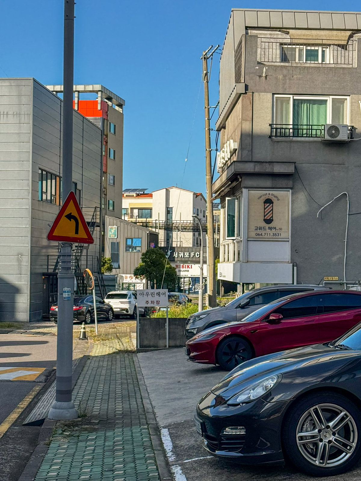 제주 남자 미용실 뒤에는 여러 대의 차를 세울 수 있는 전용주차장(주소 : 정원로 8)이 있어 차를 타고 가기에 좋았고 주차 자리가 꽉찼다면 노형중학교, 제주제일고등학교 인근 공영주차장을 이용하면 된다.
