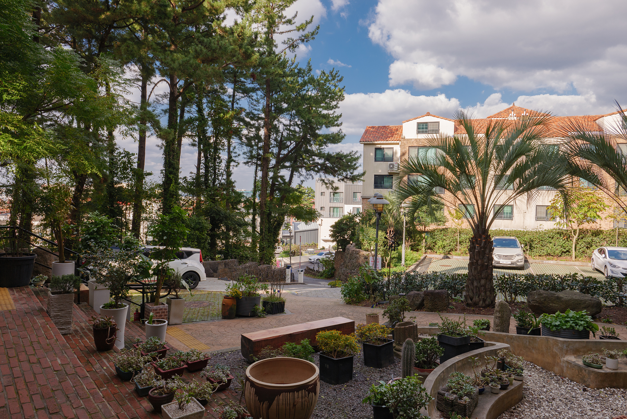 제주 민오름에 위치한 베이커리답게 콜로세움으로 들어가는 길에는 예쁜 조경으로 정원을 꾸며놨다. 여러 식물과 화분을 두어 가을, 겨울철에도 화사한 분위기를 느낄 수 있고 평소 꽃을 좋아하는 분들이 가기에도 좋은 제주공항 근처 카페다.