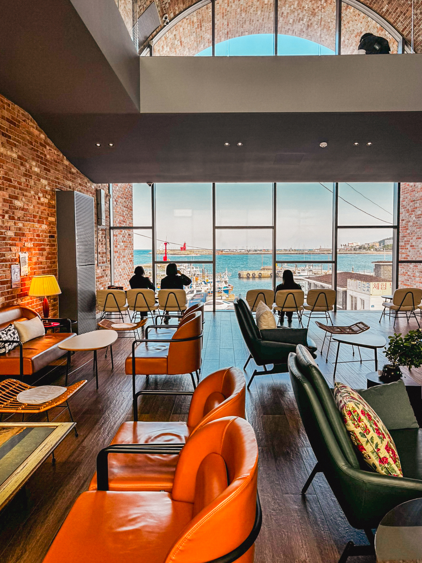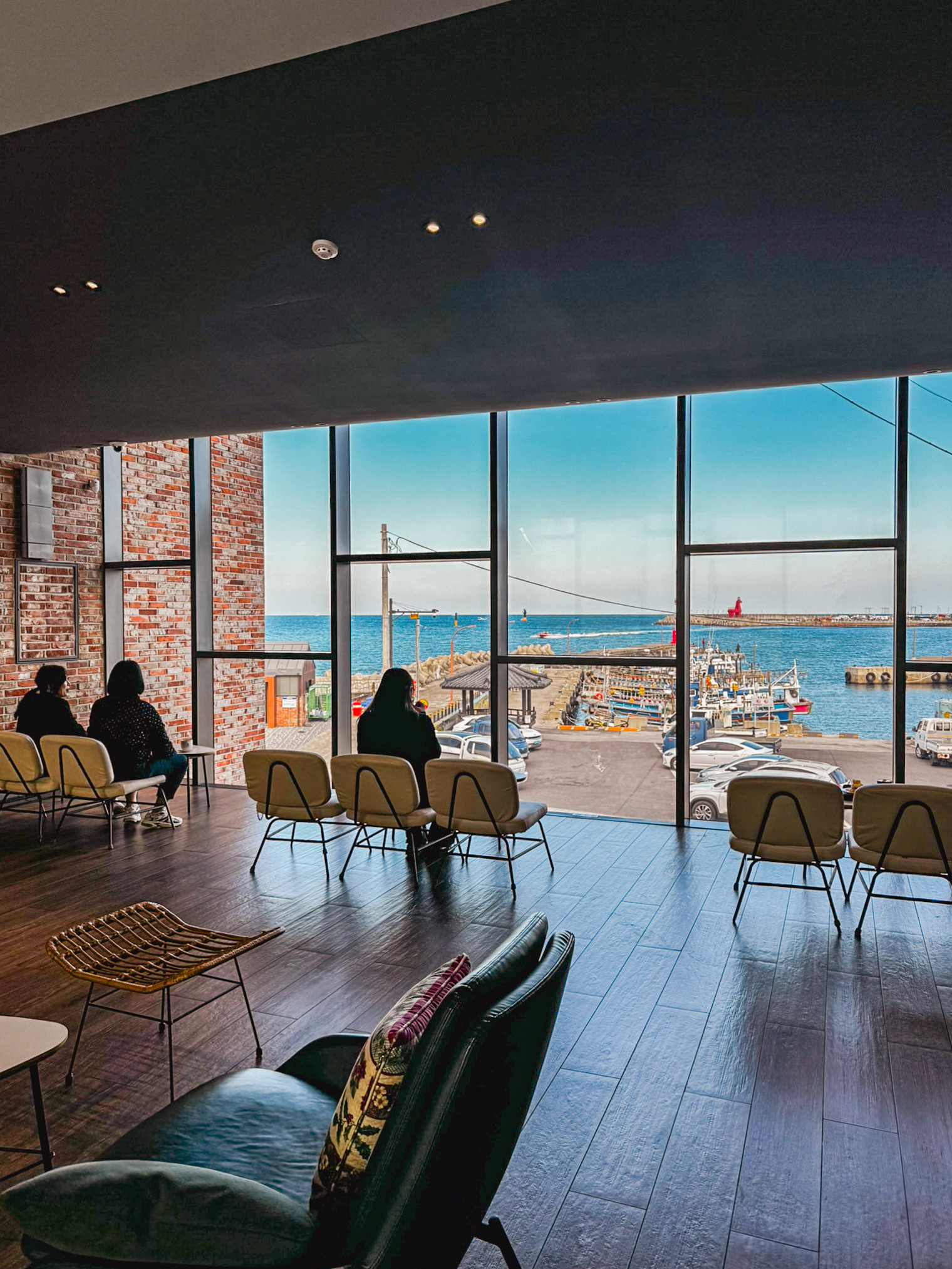테이블마다 다른 느낌으로 공간이 꾸며져 있으며 잡지나 소품 등이 외국 카페에 간듯한 느낌을 받을 수 있었다. 야외의 쌀쌀한 바닷바람과 다르게 내부 공간은 따뜻해서 머무는 동안 편안함도 동시에 느낄 수 있다.
