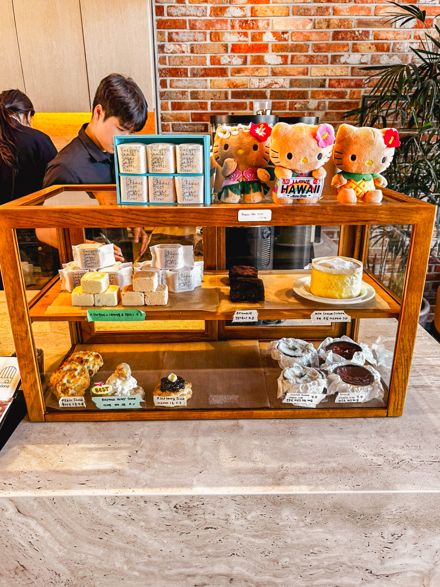 또한 디저트 메뉴로는 수제 펑리수, 플레인 스콘, 카이막허니 스콘, 라즈베리 스콘, 카스테라, 치즈케이크 등이 있어 카페 내부에서 오션뷰 전망을 바라보며 커피, 음료와 함께 먹기 좋다.