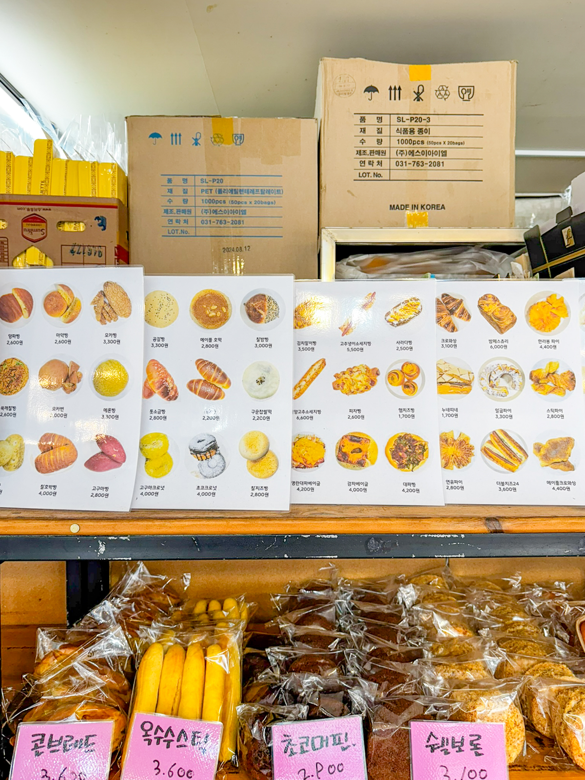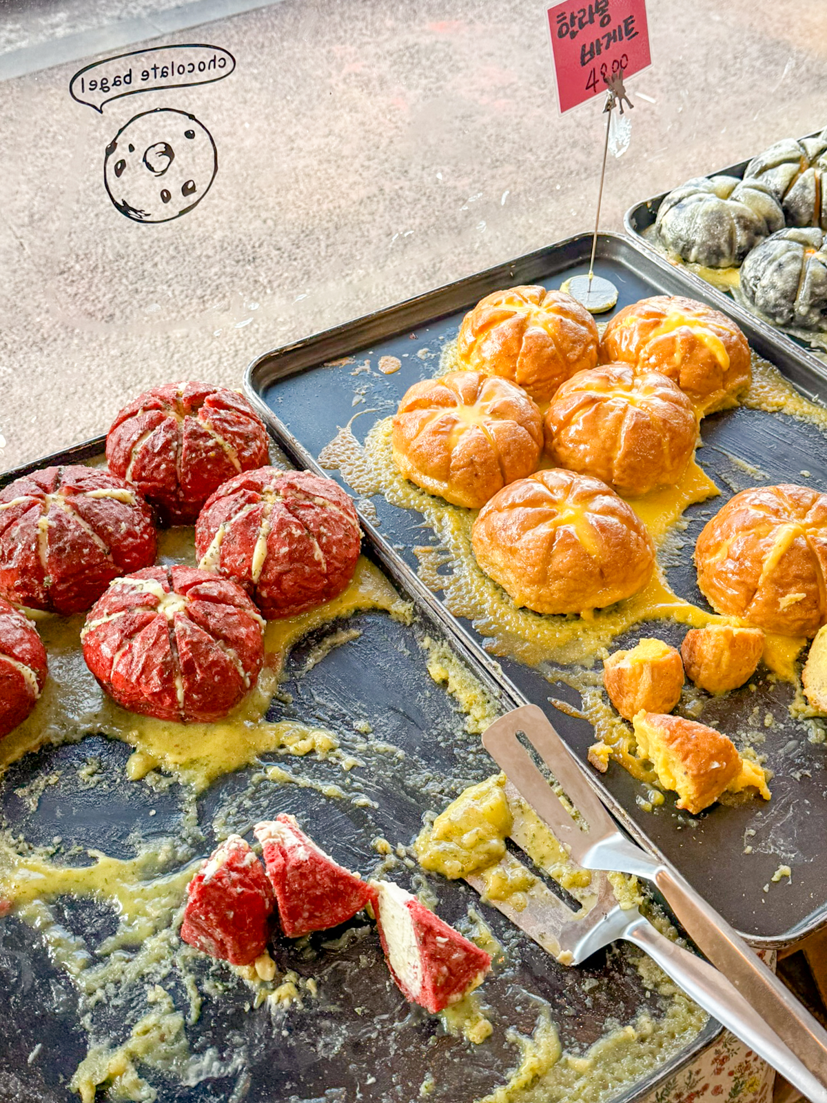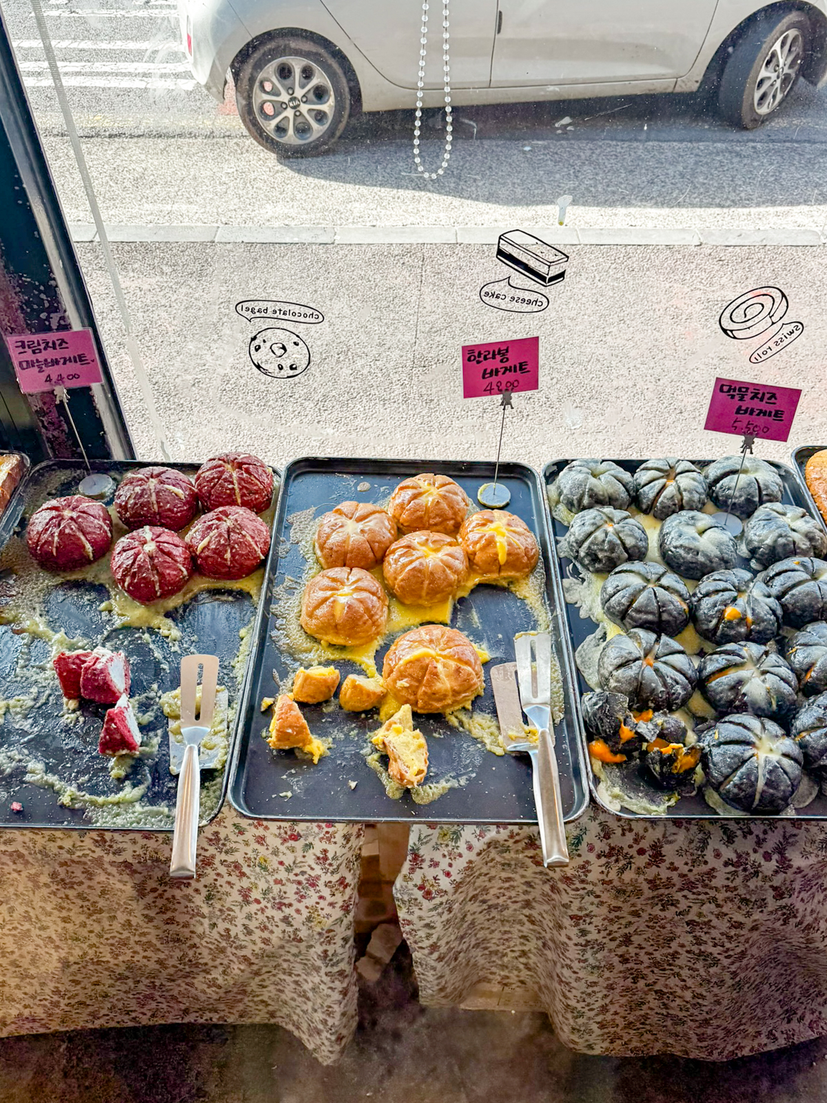 지난달에는 제주도에 왔던 소녀시대 유리가 다녀가기도 했으며 마늘바게트부터 베이글, 사라다빵, 피자빵, 앙버터, 토스트, 파이, 케이크 등 여러 먹거리가 가득했다.