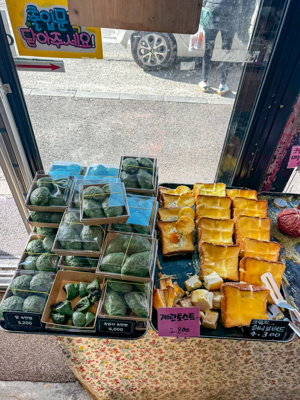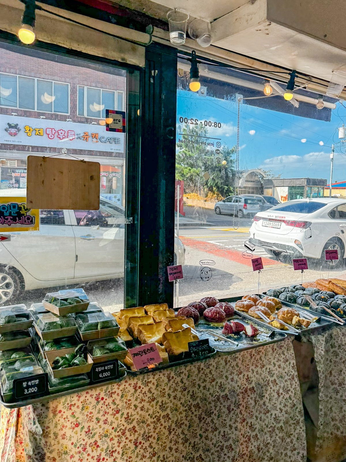 입구 옆에는 팥, 흑임자가 들어간 숙찐빵과 함께 계란토스트와 크림치즈 허니브레드도 있었다. 제주 동쪽 성산 호텔이나 숙소에 머물면서 제주도 빵집 유명한곳을 찾아 아침식사 및 브런치로 먹기에 좋았다.