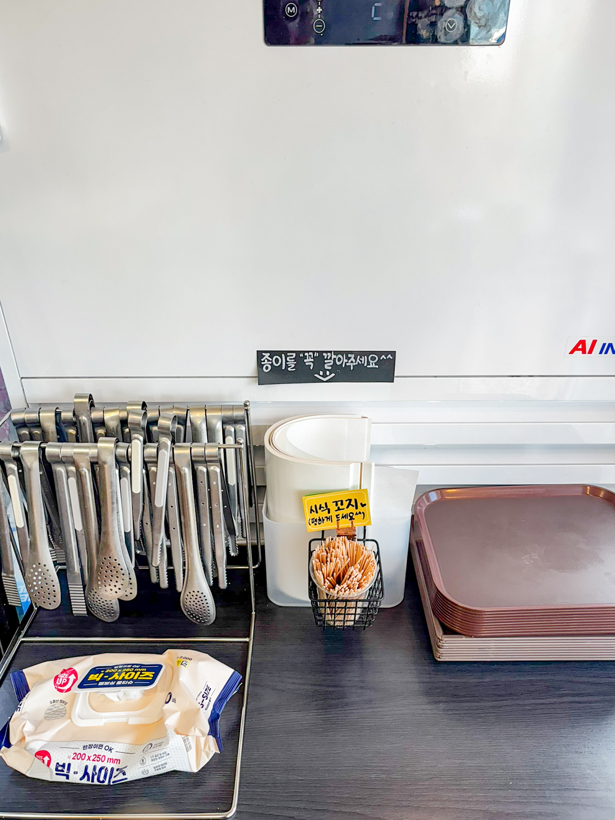무료로 커피를 내려마실 수 있는 머신기 옆으로는 공깔빵, 스틱파이, 말굽파이, 누네띠네, 연유파이, 한라봉파이 등이 있으며 벽쪽에는 소녀시대 유리 사인도 눈길을 끌었다.