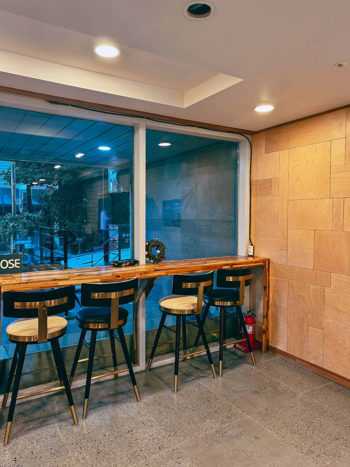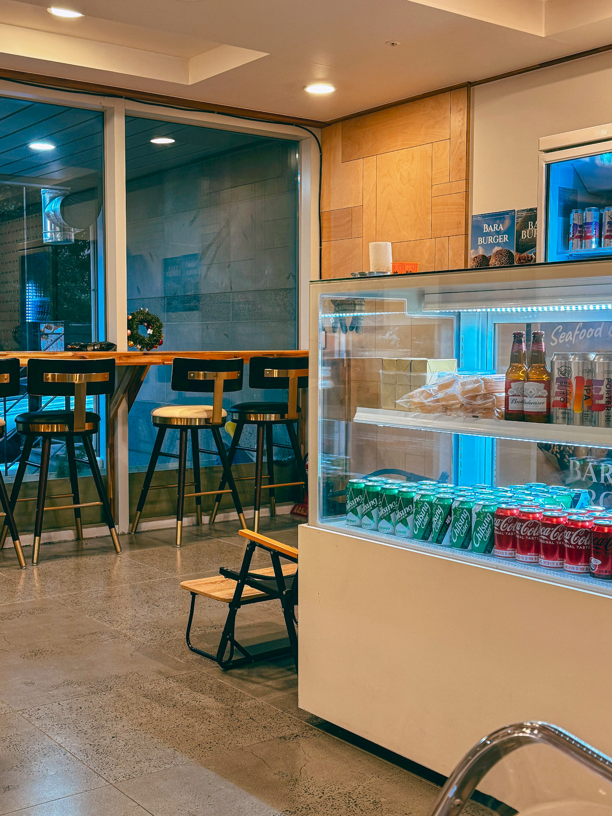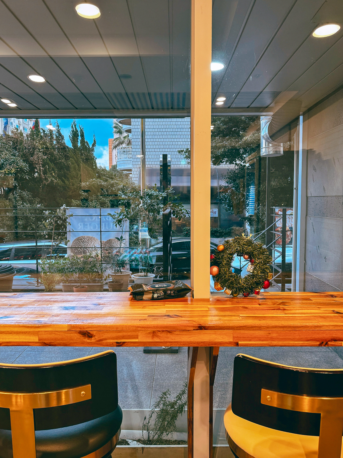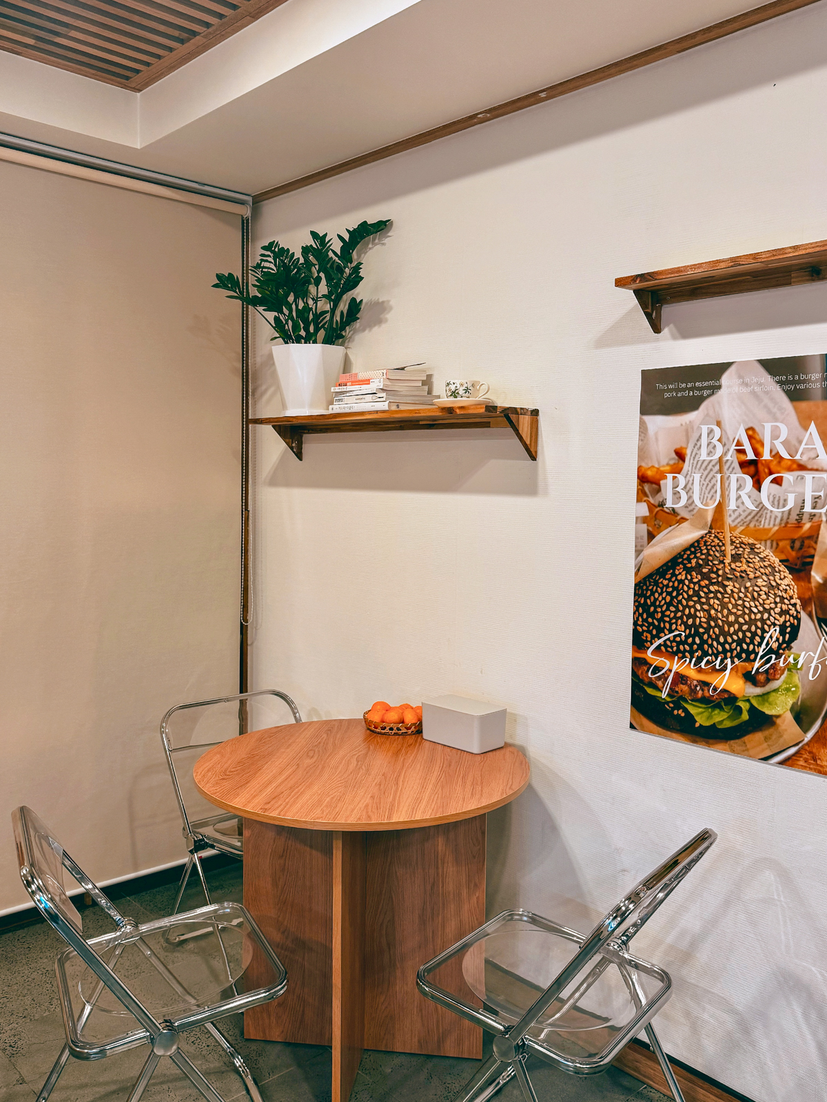 매장 안으로 들어가면 혼밥 혹은 가족이나 친구와 함께 꺼멍 흑돼지버거를 먹을 수 있는 테이블이 여러 개 있으며 겨울철을 맞아 크리스마스 소품을 두어 연말 분위기도 느낄 수 있다.
