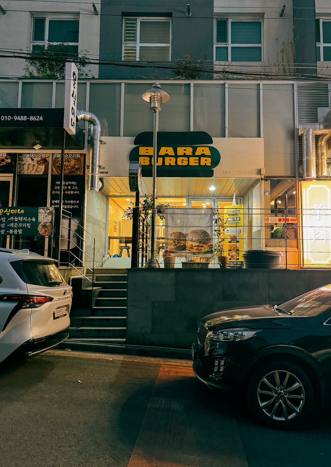 제주공항 근처 수제버거 맛집 바라버거는 제주공항에서 차로 약 12분 거리인 제주 펄호텔 바로 옆 골목길에 있는 짱구분식, 연화양꼬치 사이에 위치해 있으며 운영시간은 매주 월요일을 제외한 오전 11시부터 오후 10시 30분까지다.