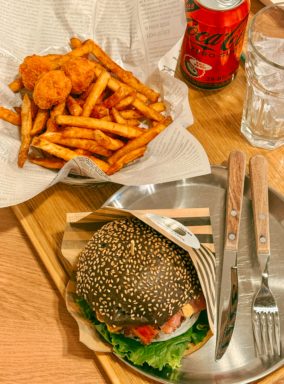 다른 제주 수제버거 맛집과 마찬가지로 세트메뉴로 주문할 경우 감자튀김과 음료수를 선택해 먹을 수 있으며 이날 내가 먹었던 더블 꺼멍 흑돼지버거 세트는 14,900원이었다.