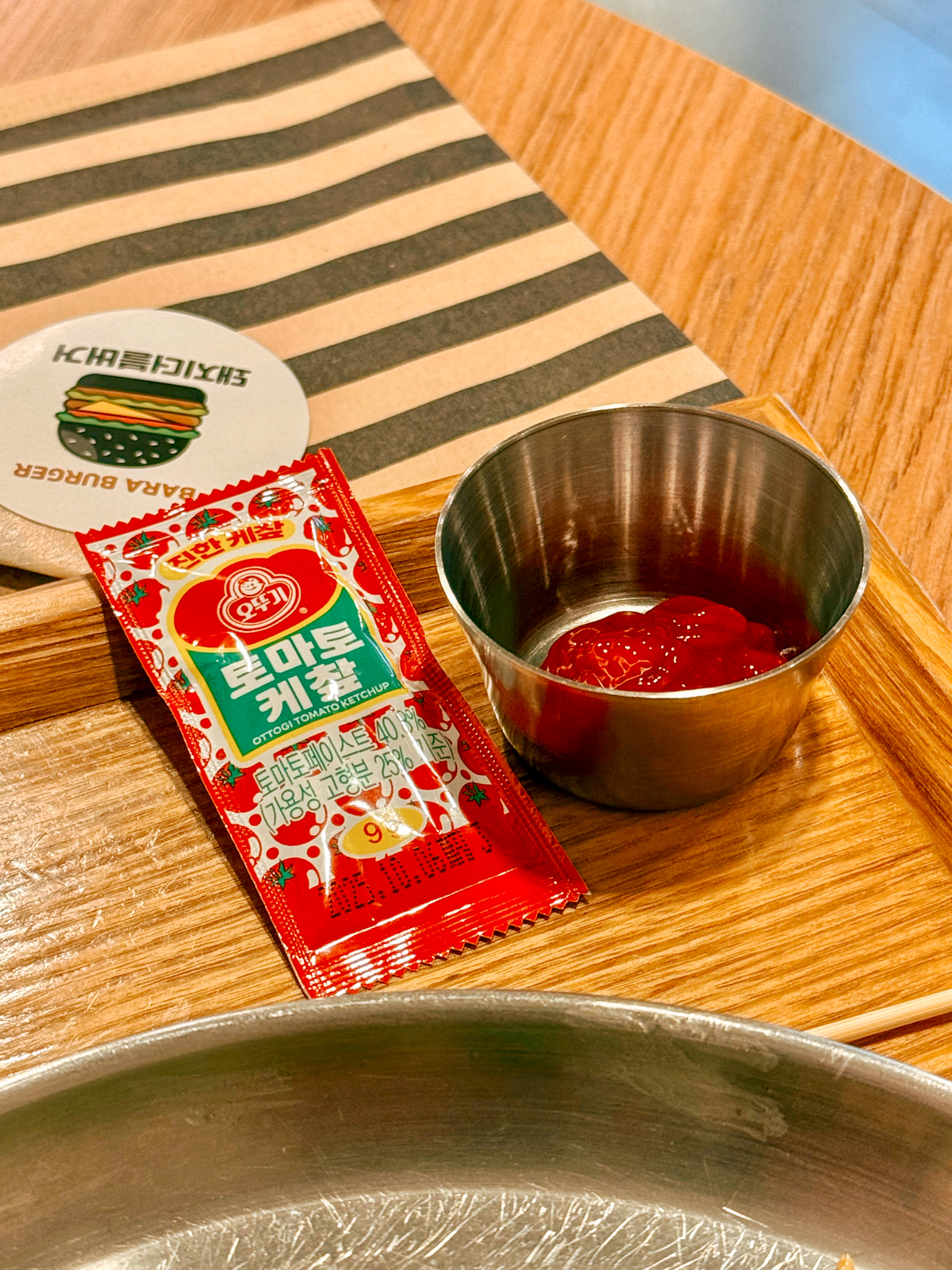 토마토케첩과 함께 자그만한 그릇이 나와 더욱 깔끔하게 꺼멍 흑돼지버거와 감자튀김을 먹을 수 있다. 케첩이 모자라는 경우에는 언제든 사장님께 요청해 리필을 받을 수 있으니 참고해보자.