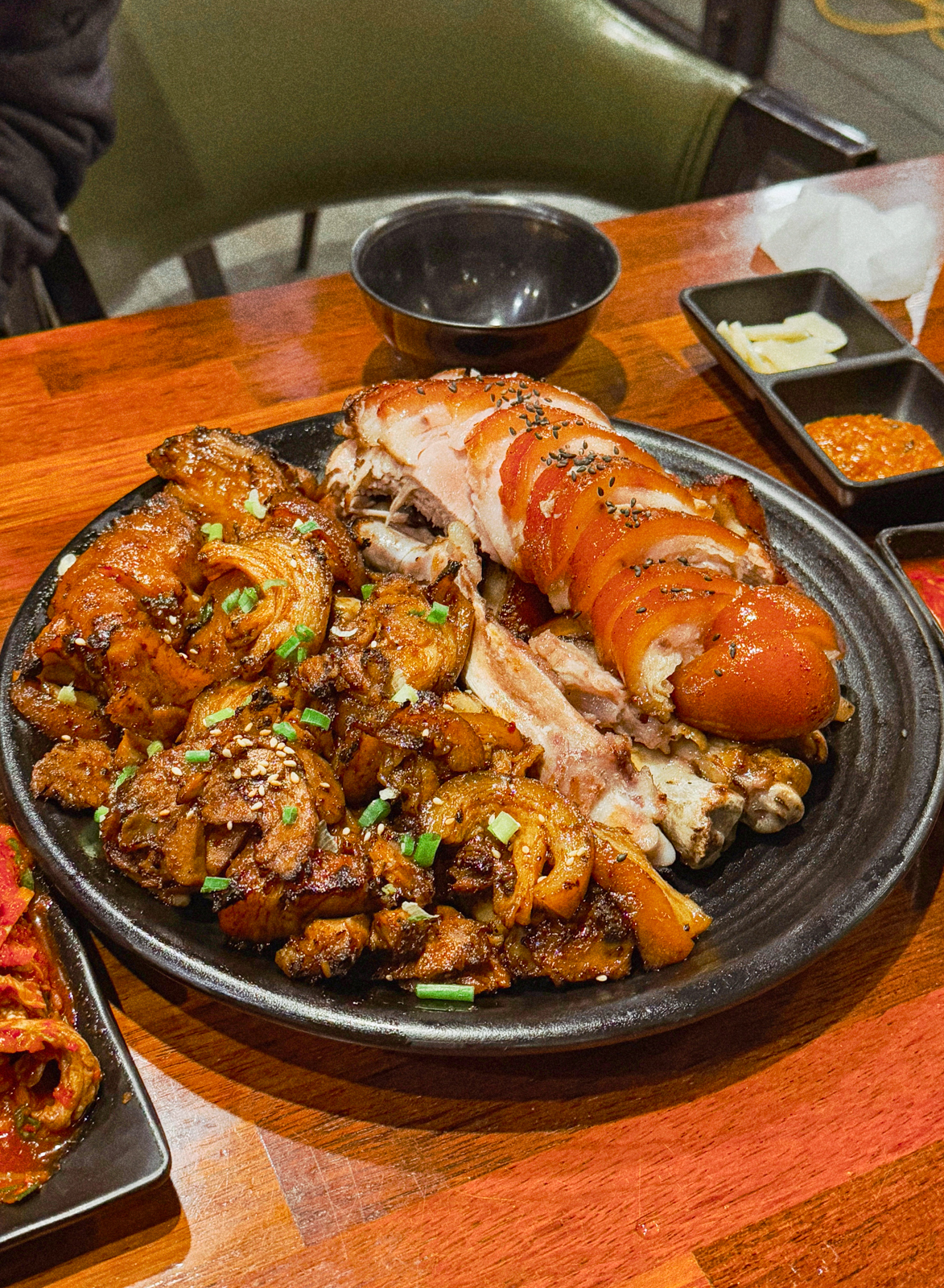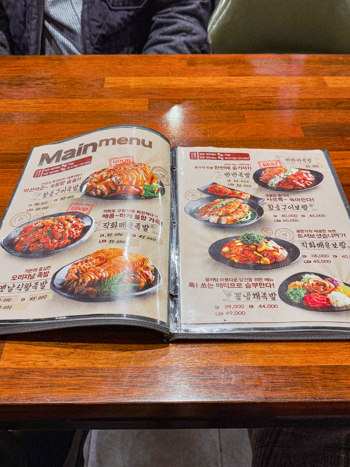 친한 지인과 함께 제주공항 근처 맛집 깐깐한족발에 방문했던 날에는 일반족발과 직화 매운족발을 함께 먹을 수 있는 반반세트를 주문했다.