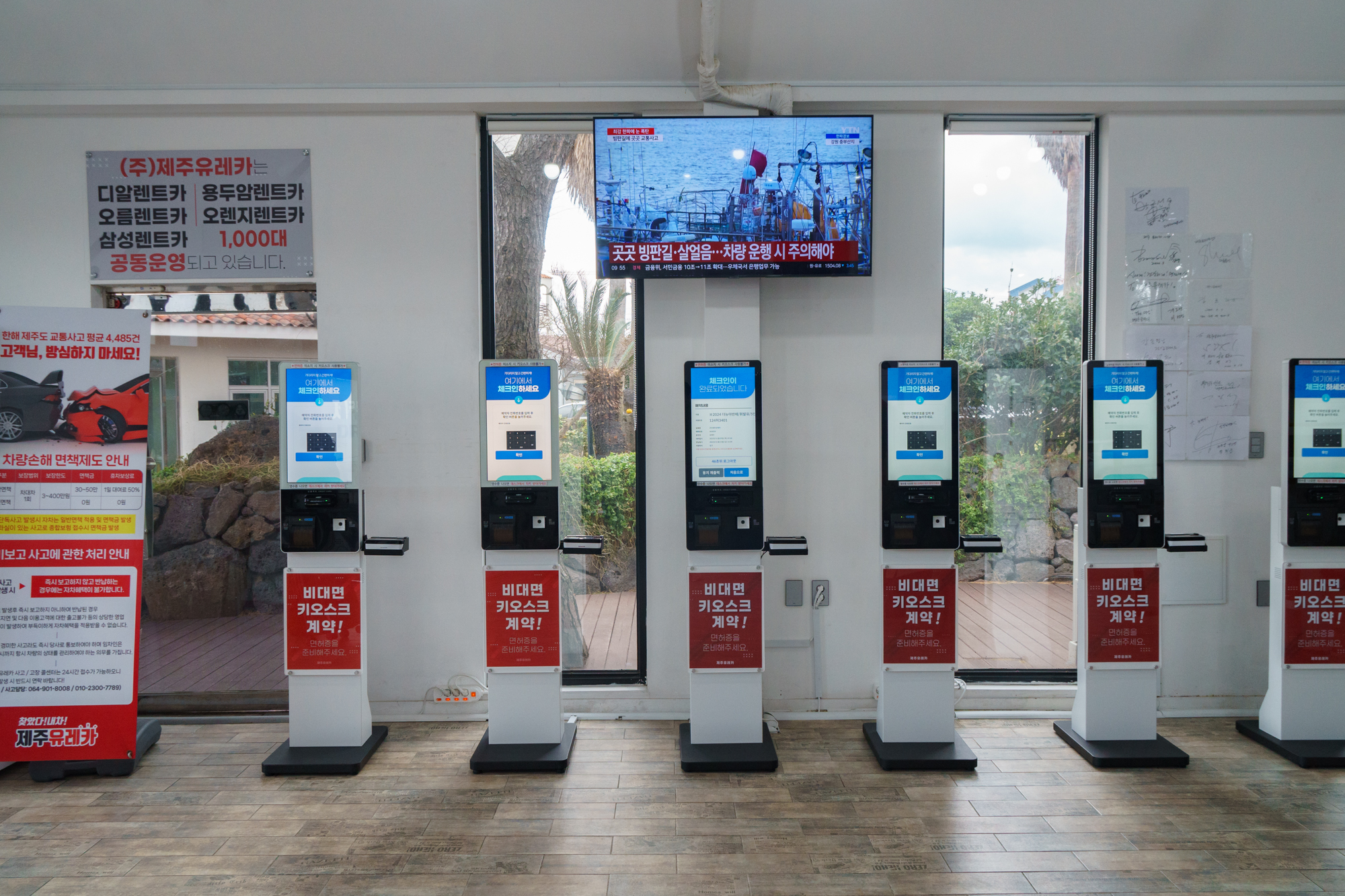 차고지에 도착했다면 셔틀버스에서 내려 라운지 건물로 들어가서 데스크 직원 혹은 키오스크 무인단말기를 통해 제주 렌트카 실시간예약 제주속으로 홈페이지에서 예약했던 렌트카 내역을 확인받고 자차 보험에 대한 설명을 들은 후 서명하면 차량 위치를 곧바로 안내받을 수 있다.