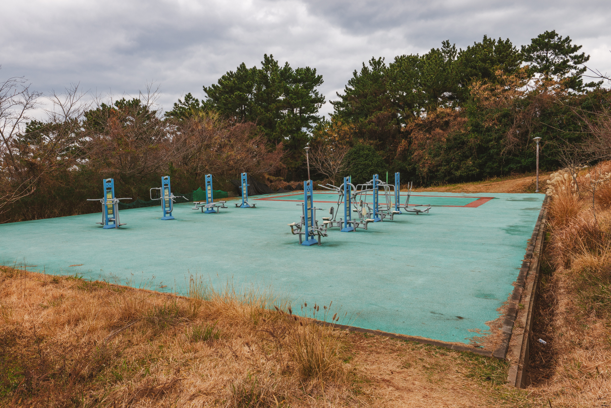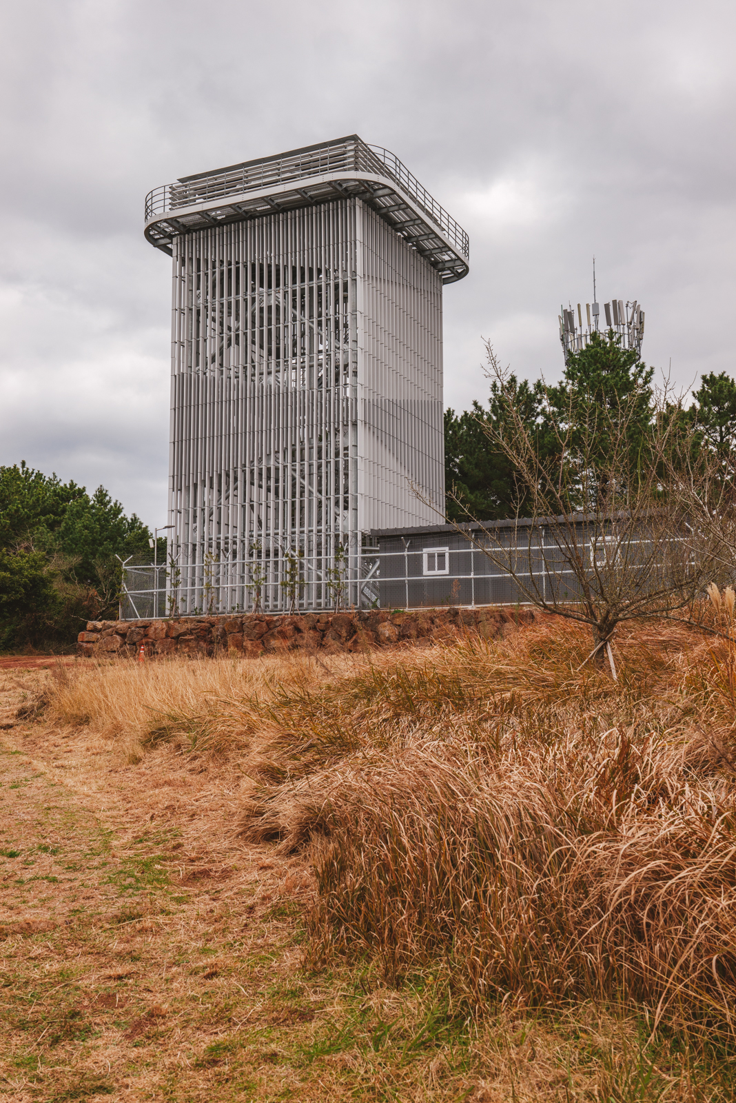 제주 수산봉 정상에는 운동기구 시설과 배드민턴장이 있으며 항공 레이더를 관찰하는 시설이 크게 지어져 있다. 겨울철에 가보니 전체적으로 한적한 느낌이 들었는데 바람이 많이 불지 않아 편하게 트레일을 할 수 있었다.