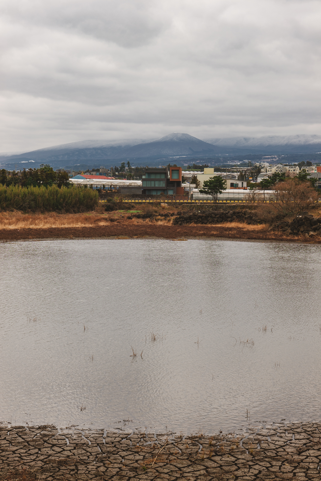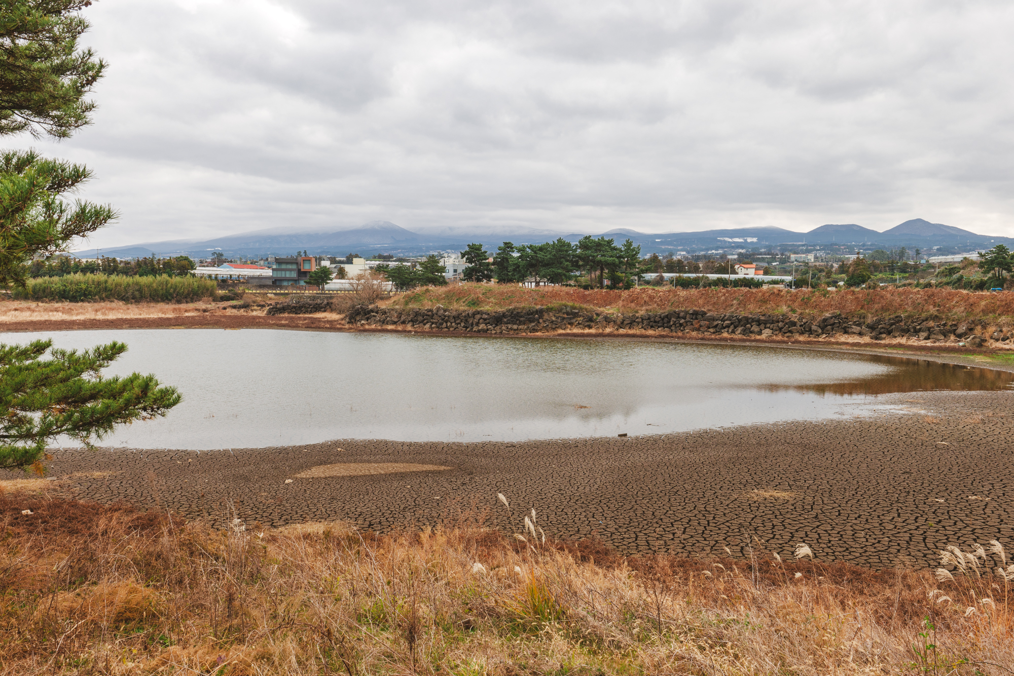 제주 올레길 16코스 애월 수산봉 그네로 가기 전 주차장 앞에는 드르쿰다 제주 애월점이라는 베이커리 카페가 운영되고 있다. 2층에서는 저수지를 바라보며 머물 수 있는 실내 공간이 있으며, 1층에는 저수지라면이라는 무인라면을 끓여먹을 수 있는 시설이 있어 이곳에 방문하다면 미리 참고하면 좋겠다.