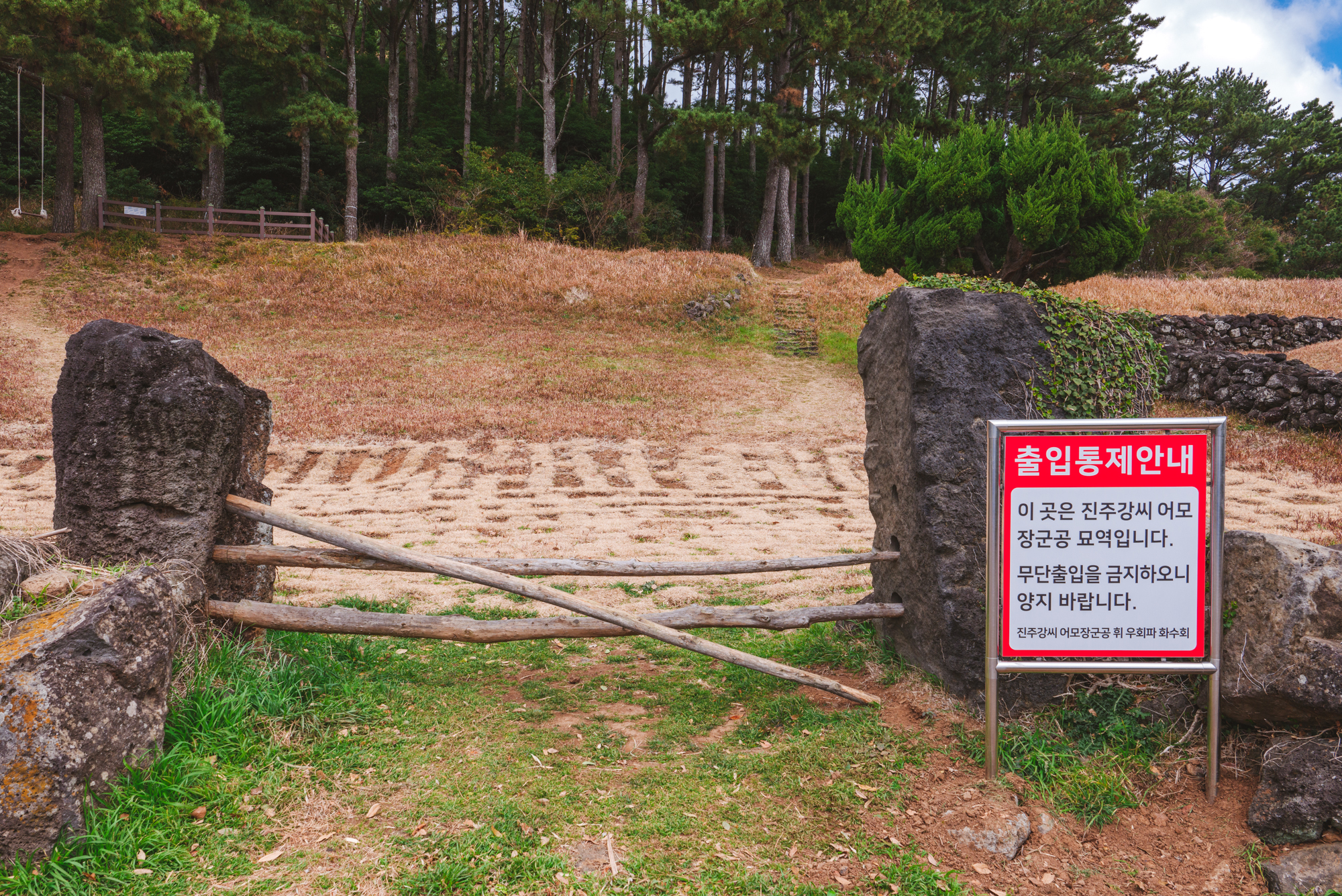 이전에 제주 애월 수산봉에 갔을 때는 위 사진에 보이는 곳을 따라 곧바로 그네를 탈 수 있는 곳으로 갈 수 있었으나, 진주 강씨 어모장군공 묘역이 있어 현재는 출입이 막혀 있으며 오름 산책로를 따라 올라가야 그네 체험을 할 수 있다.