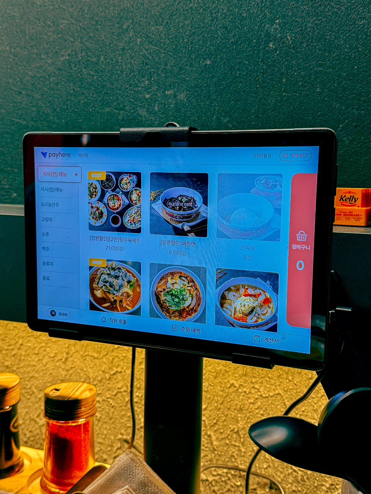 제주공항 근처 점심 맛집 차이락에서는 테이블에 설치된 키오스크 단말기를 통해 메뉴 주문이 가능하다. 크게 면 요리, 밥 요리, 술안주가 있으며 고량주, 소주, 맥주, 하이볼 등을 주문해 요리와 함께 먹을 수 있다.