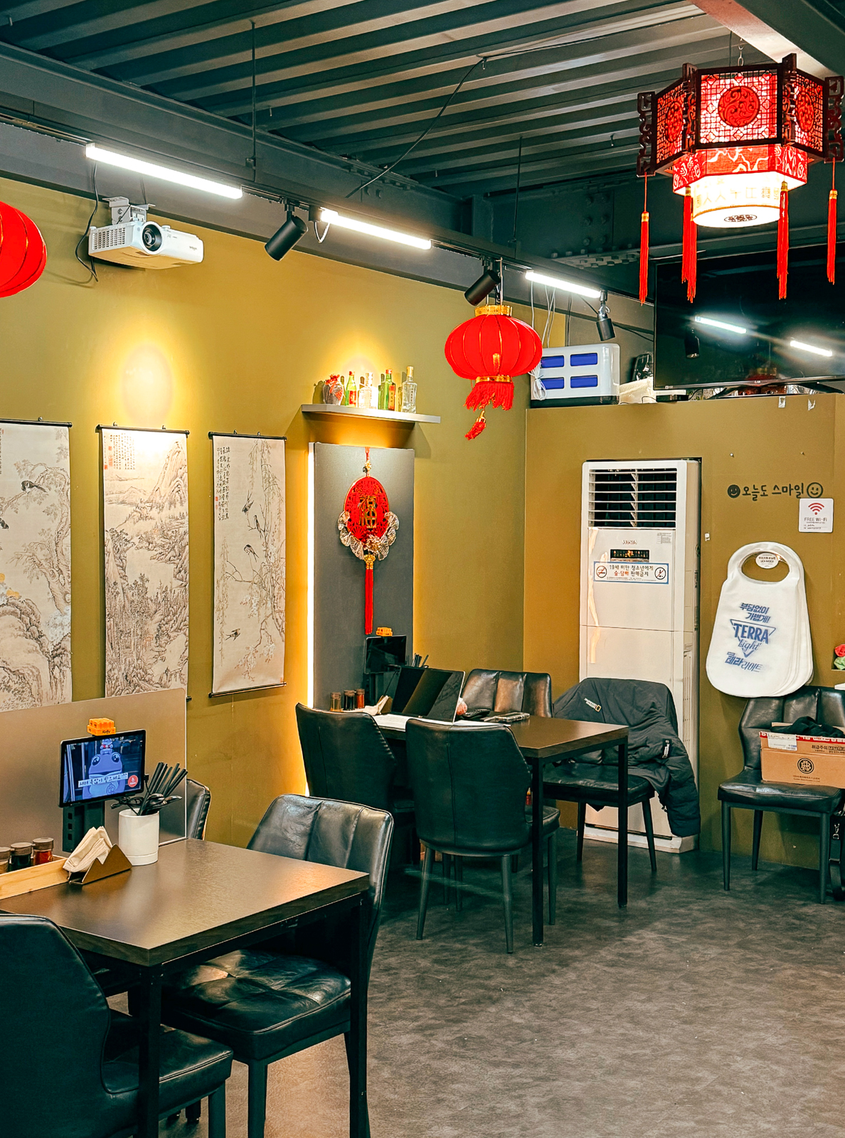 제주공항 근처 점심 맛집 차이락은 중식요리 전문점답게 중화권 분위기를 자아내는 인테리어로 탈바꿈했으며 2~4인이 앉아서 짜장면, 짬뽕, 탕수육 등으로 식사를 할 수 있는 테이블이 마련되어 있었다.