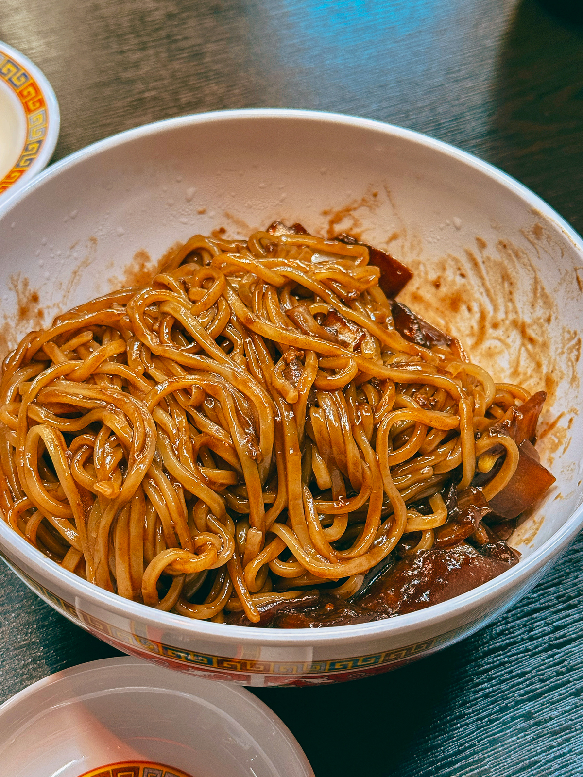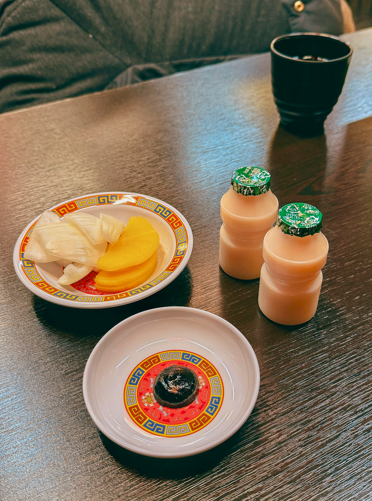 제주공항 근처 점심 맛집 차이락에 방문했던 날에는 지인과 함께 꼬막짬뽕, 옛날 짜장면, 레드크림 쯔란기를 주문했다. 메뉴를 주문하면 양파, 단무지, 춘장이 나오며 인원 수만큼 요구르트도 준다.