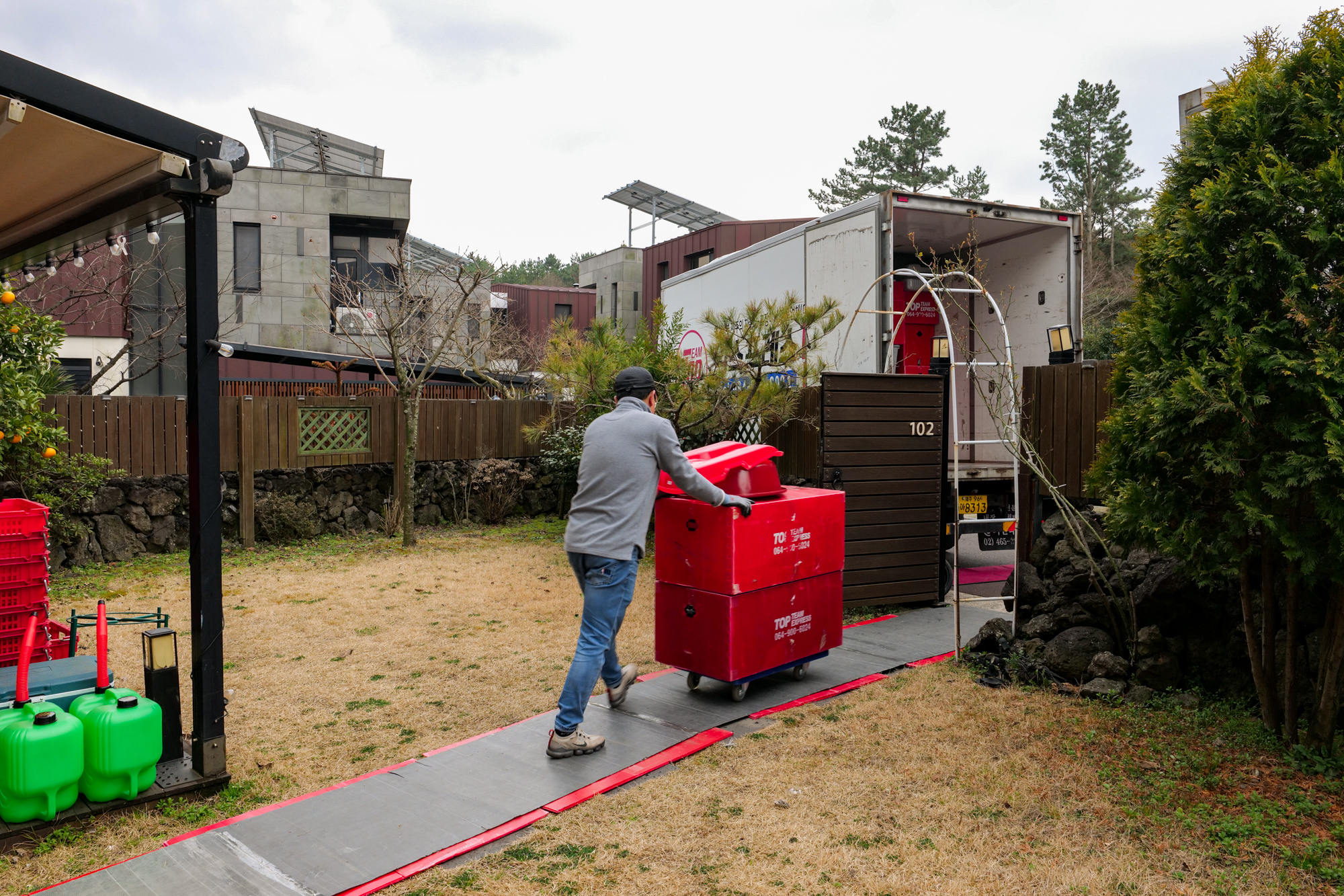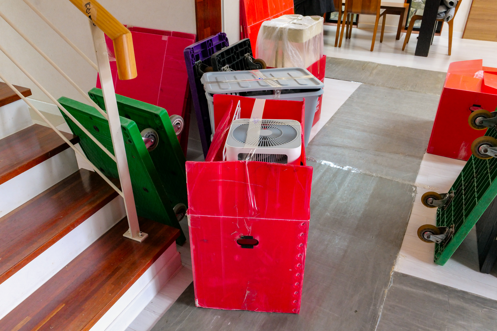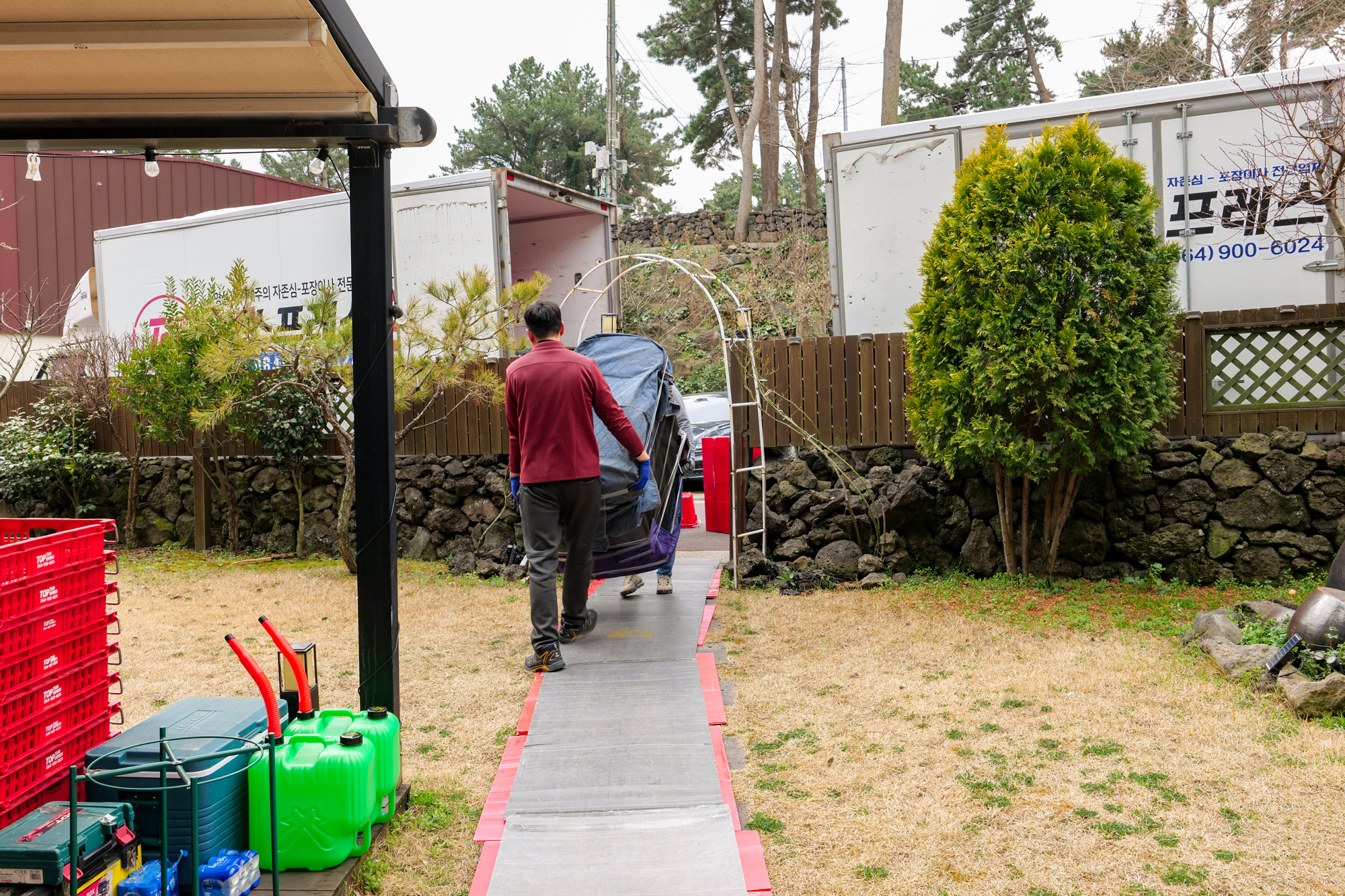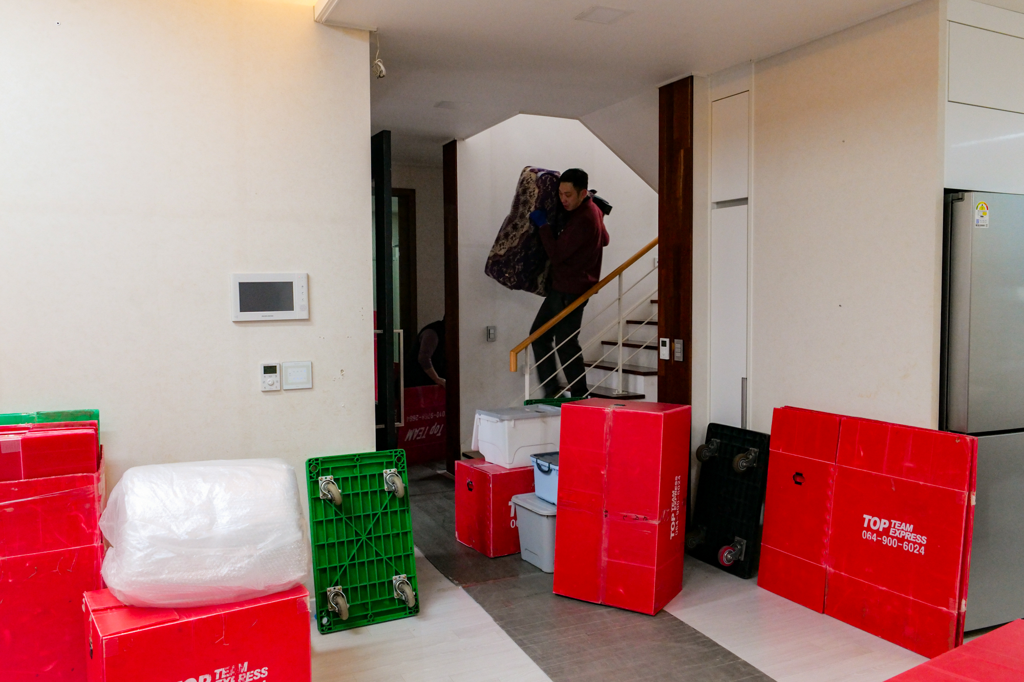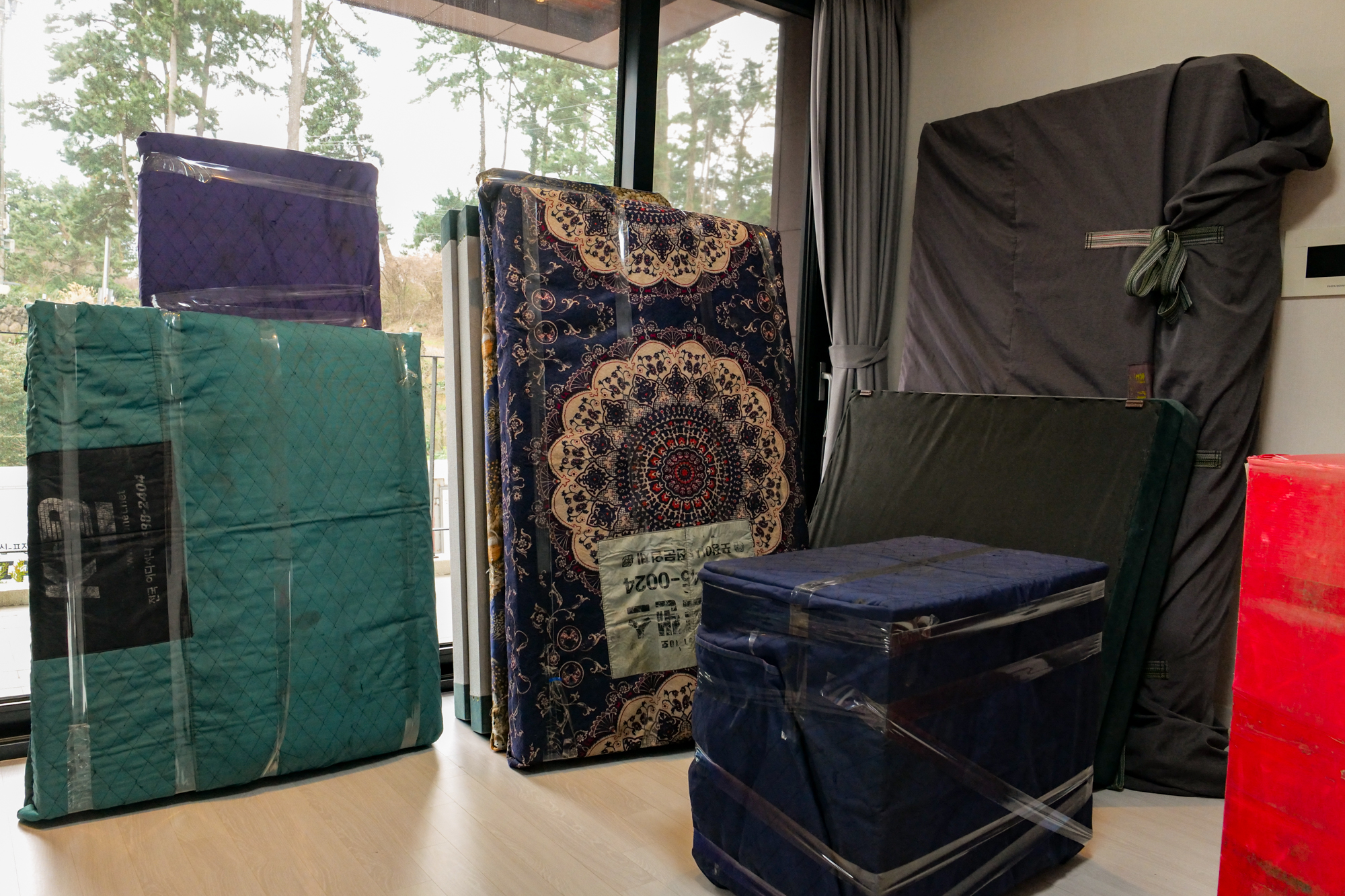 견적 비용을 받고 제주도 이사를 할 때는 여러 명의 기사님이 동원되어 거실, 주방, 방에 있는 물품부터 차례대로 포장했다. 냉장고인 경우 바닥이 휩쓸리지 않게 장판을 길게 세팅했고 다른 물건도 파손되거나 훼손되지 않게 꼼꼼하게 처리를 해주어 시작부터 믿음이 갔다.