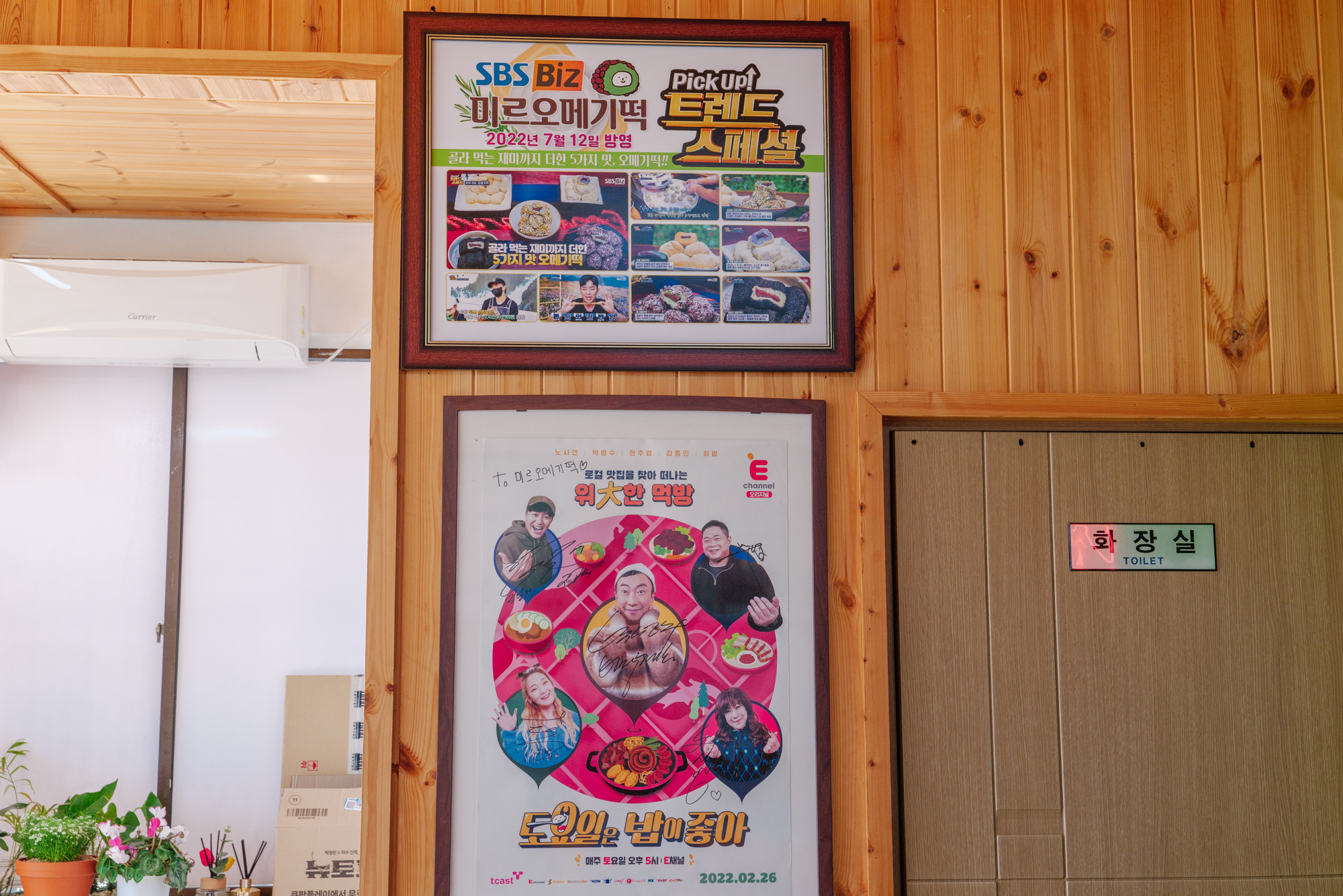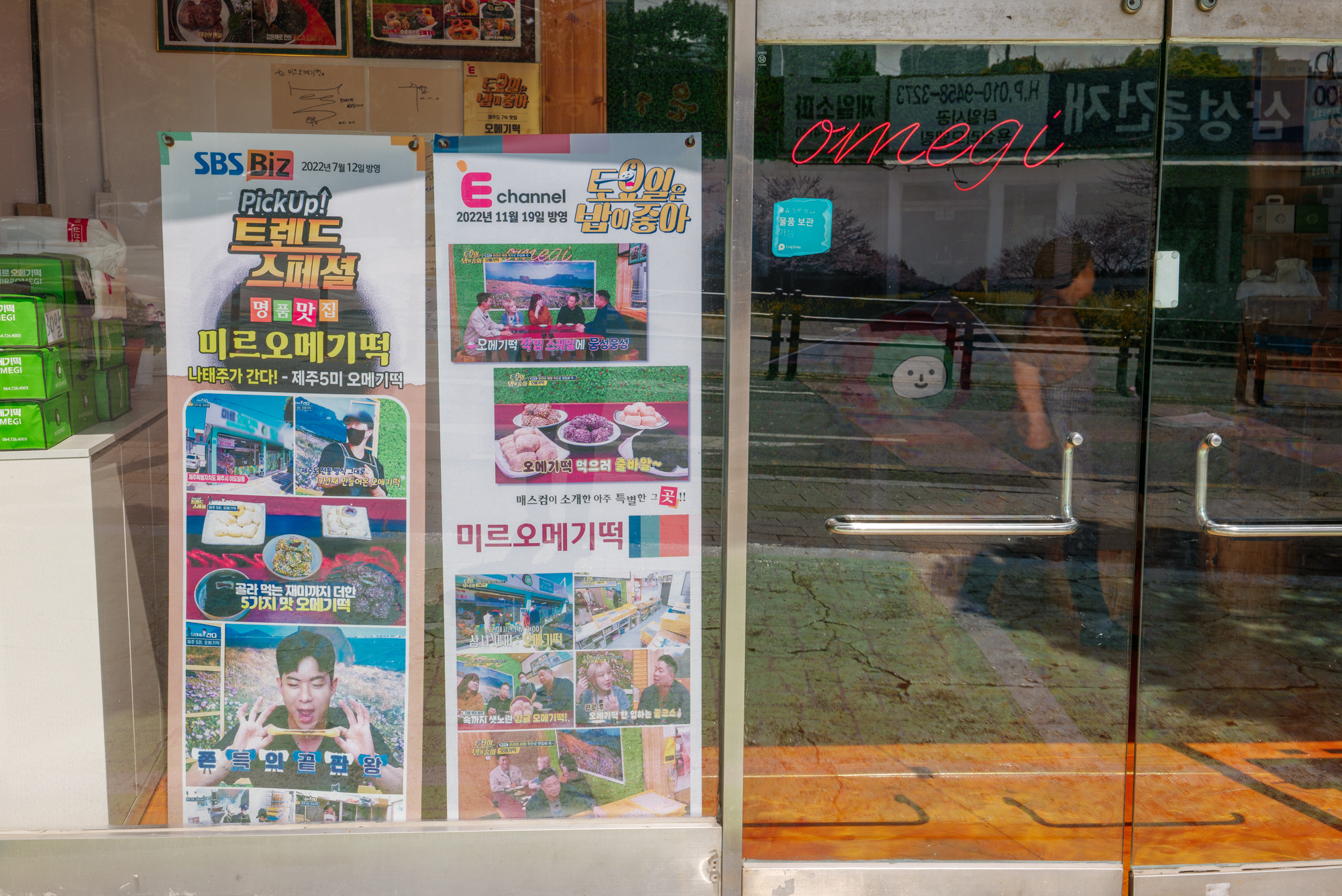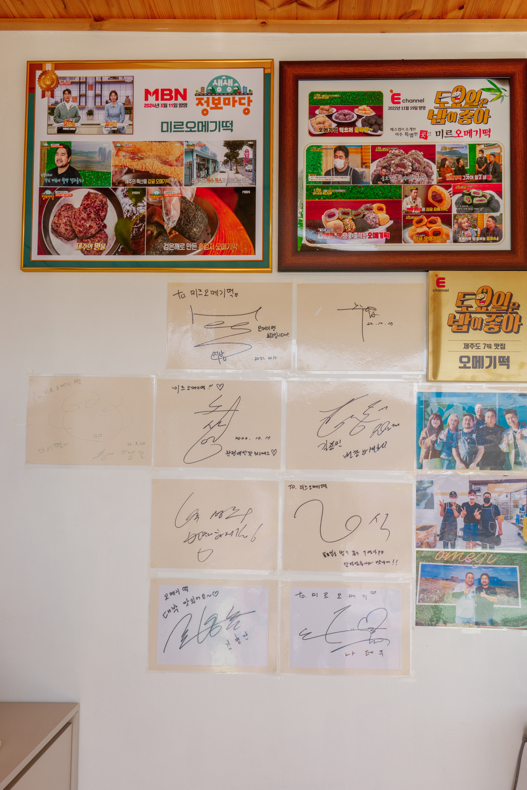 여러 방송 프로그램에 소개된 제주 오메기떡 유명한 곳답게 매장 내부로 들어가면 방송 화면 캡쳐 포스터를 볼 수 있으며 여러 유명 연예인들의 사인도 있는 만큼 제주도 내에서도 인지도가 높기에 믿고 주문할 수 있었다.
