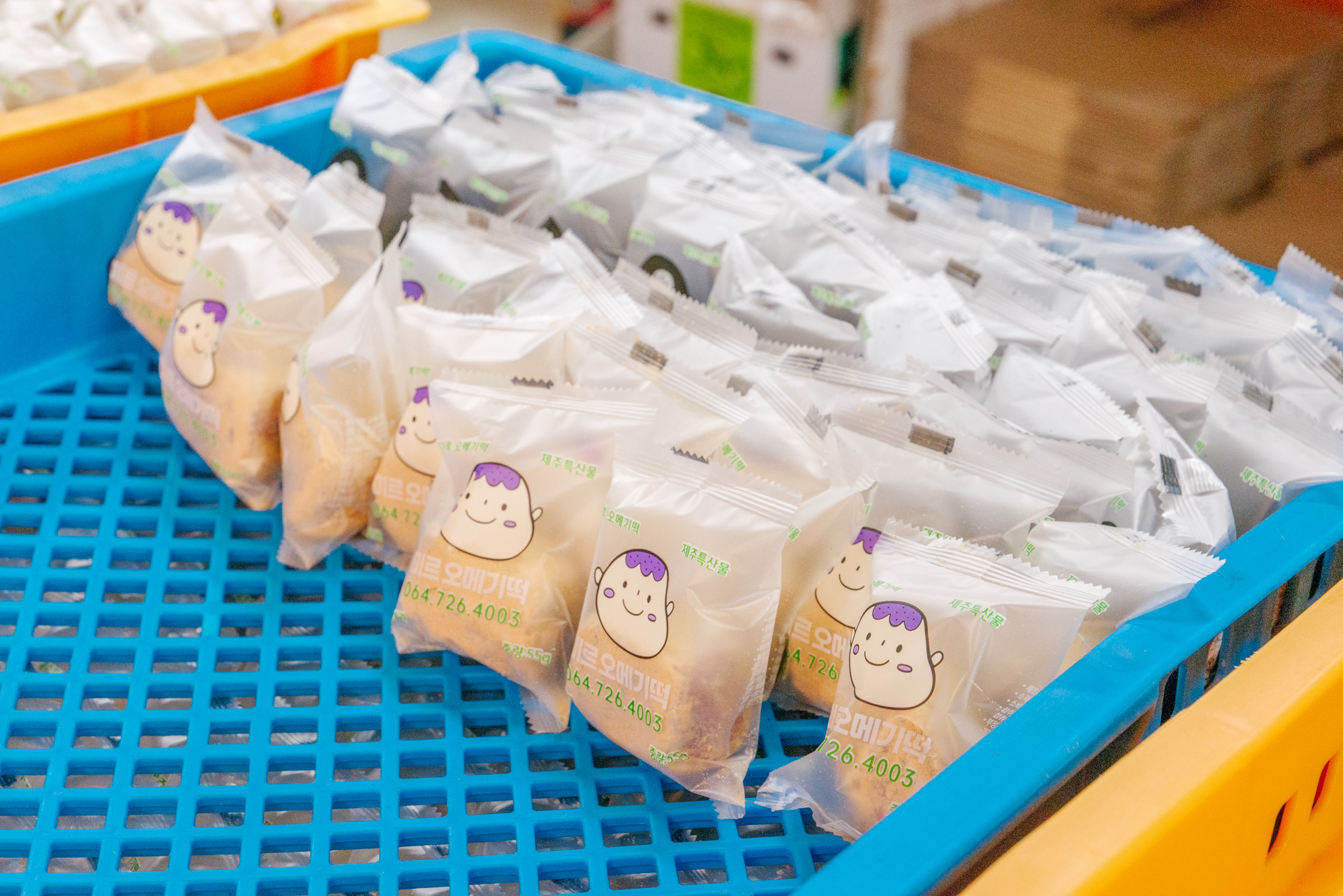 제주 오메기떡 유명한 곳 미르오메기떡에서는 당일 아침 일찍 생산을 하기에 더욱 쫄깃하면서 신선한 맛을 느낄 수 있다. 매장에 방문하면 이모님들이 직접 오메기떡을 만드는 모습도 실시간으로 볼 수 있는데 정성스레 하나하나 소포장하는 모습을 보면서 신뢰도가 느껴졌다.