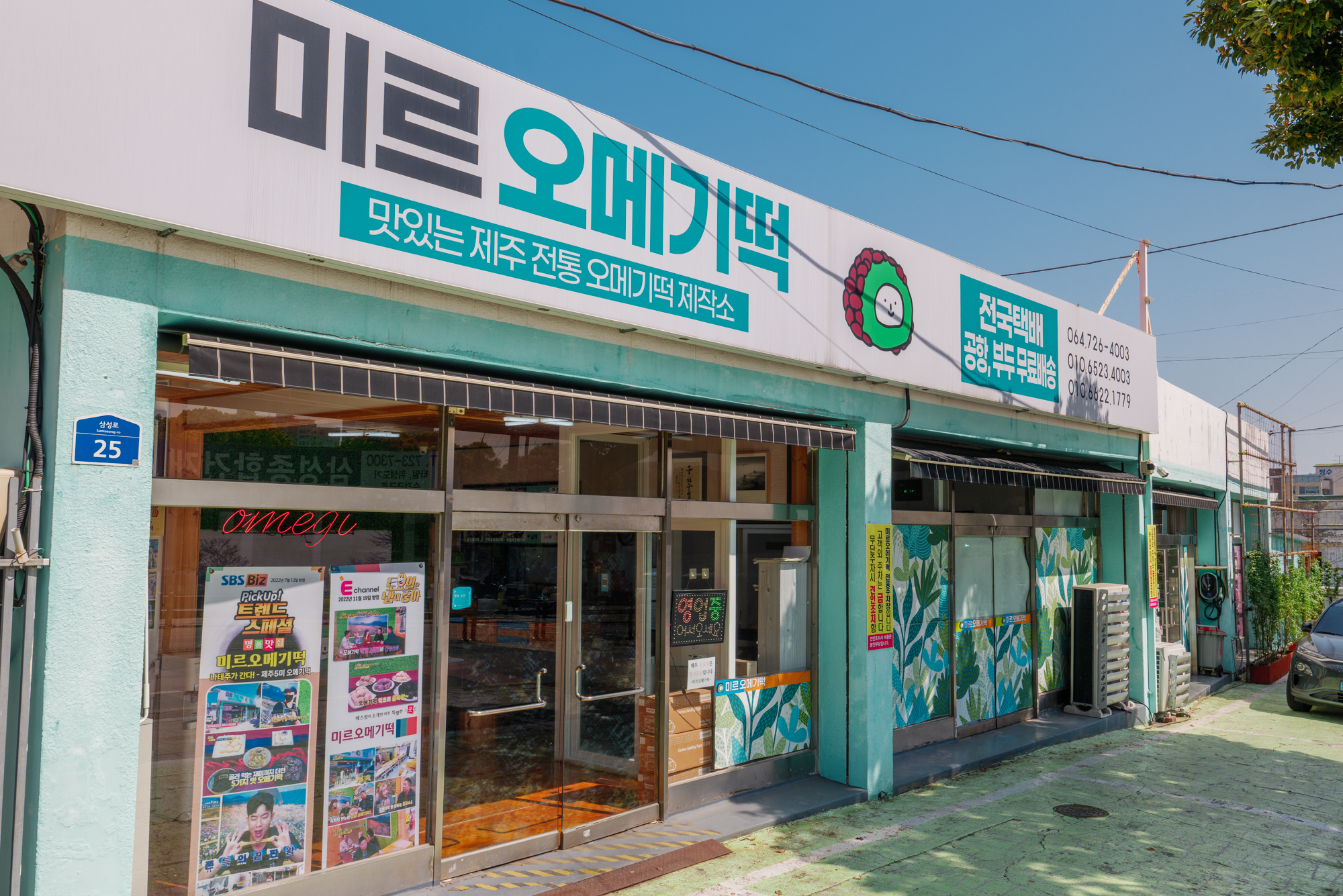 미르오메기떡은 제주공항에서 멀지 않은 곳이자 제주시 명소인 삼성혈 맞은 편에서 오랜 시간 운영하고 있는 오메기떡 제조 업체로 SBS Biz 'Pick Up! 트렌드 스페셜', E채널 '토요일 밥이 좋아' 등 방송 프로그램에 소개된 바 있다.