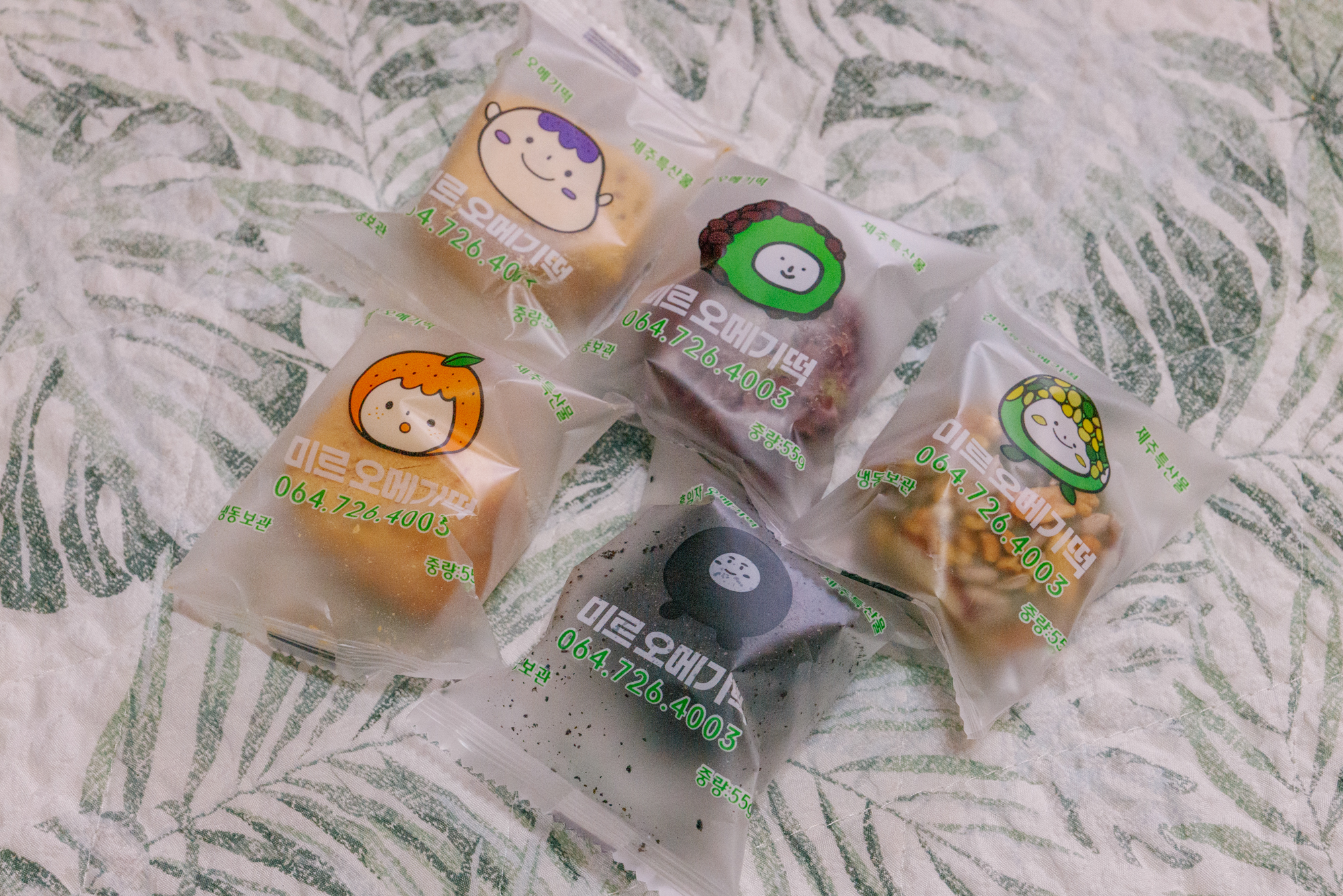미르오메기떡에서 방문하여 제주공항 오메기떡을 택배로 주문하니 사장님이 서비스라며 종류별로 하나씩 오메기떡을 따로 포장해주셨다.