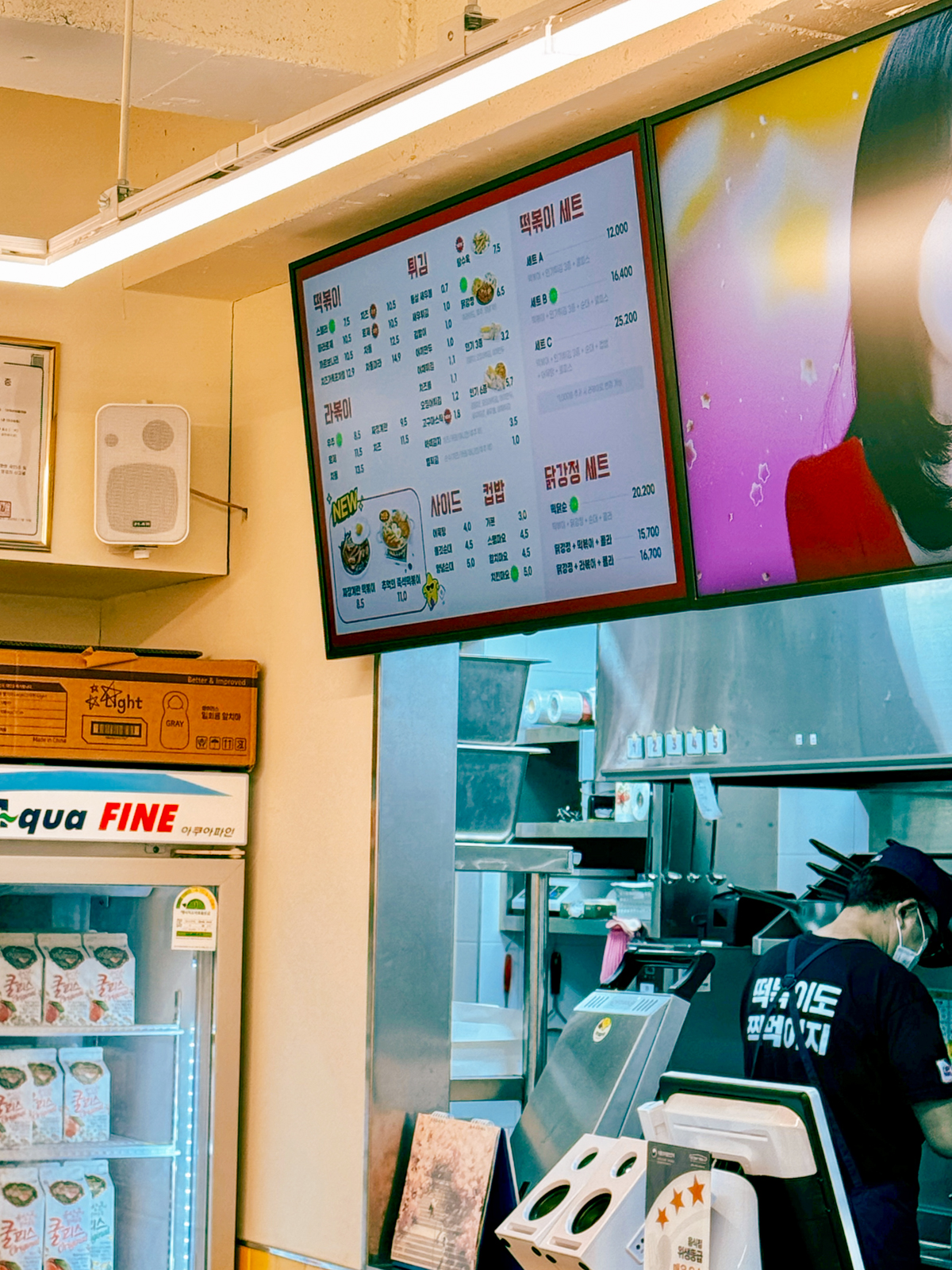 이곳에서 맛볼 수 있는 차돌마라 떡볶이, 닭강정, 치즈폭포떡볶이 사진이 담긴 포스터가 무척 먹음직스러워보였다.