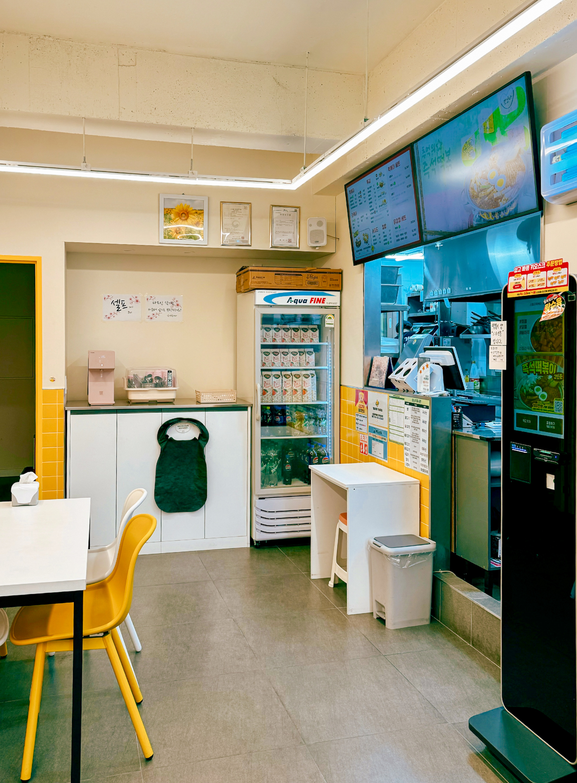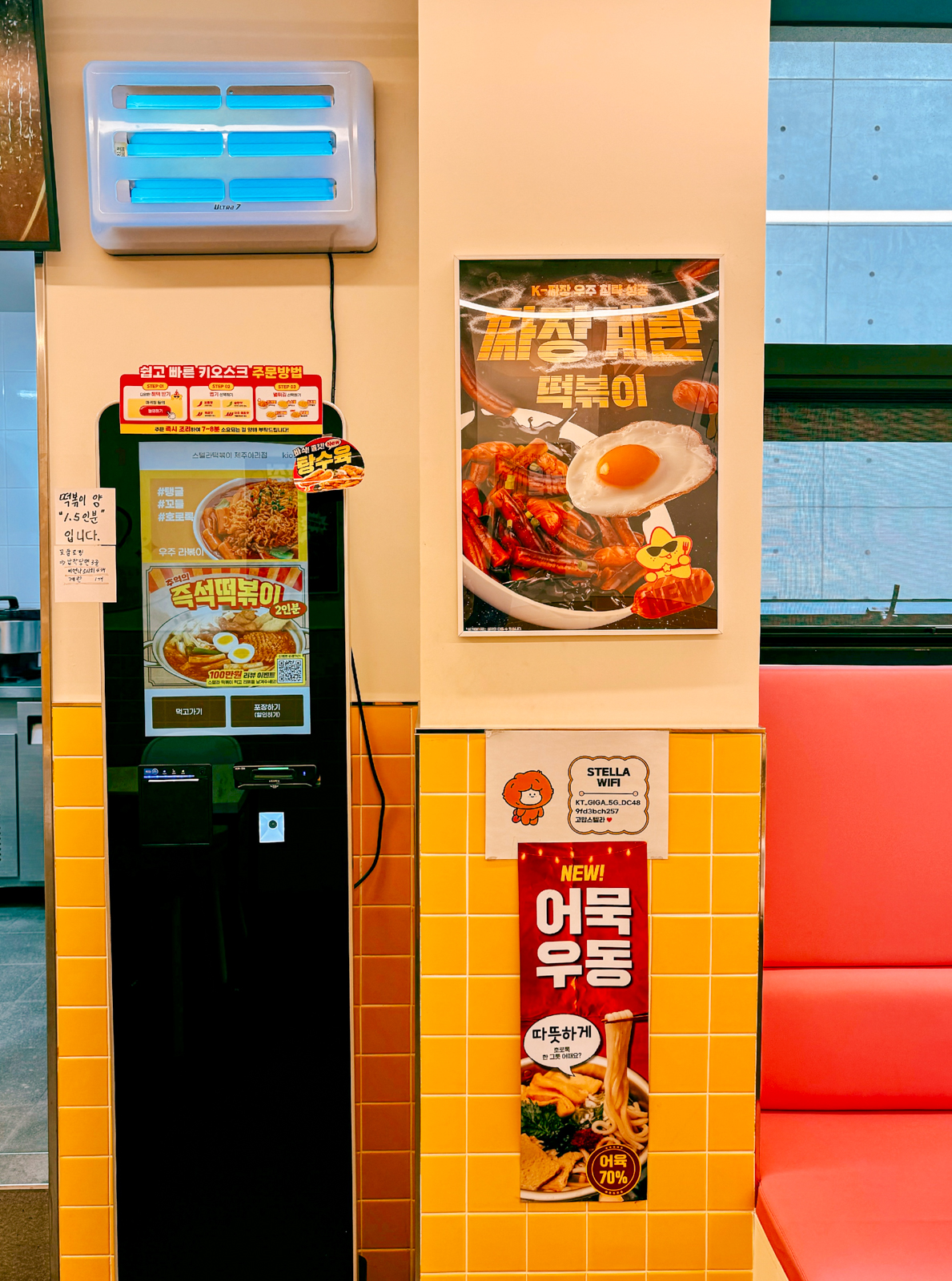 제주 아라동 맛집 스텔라떡볶이에서는 키오스크를 통해 원하는 메뉴를 선택해 매장 취식 및 포장을 할 수 있으며 포장 시 1천 원 할인 혜택도 주어진다.