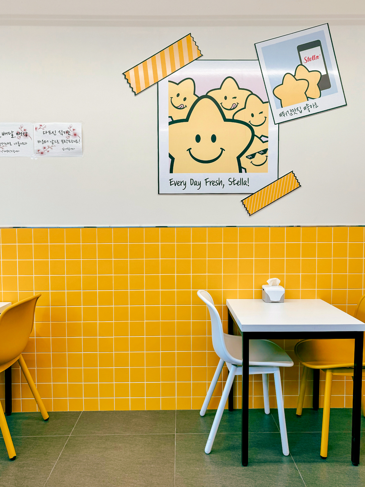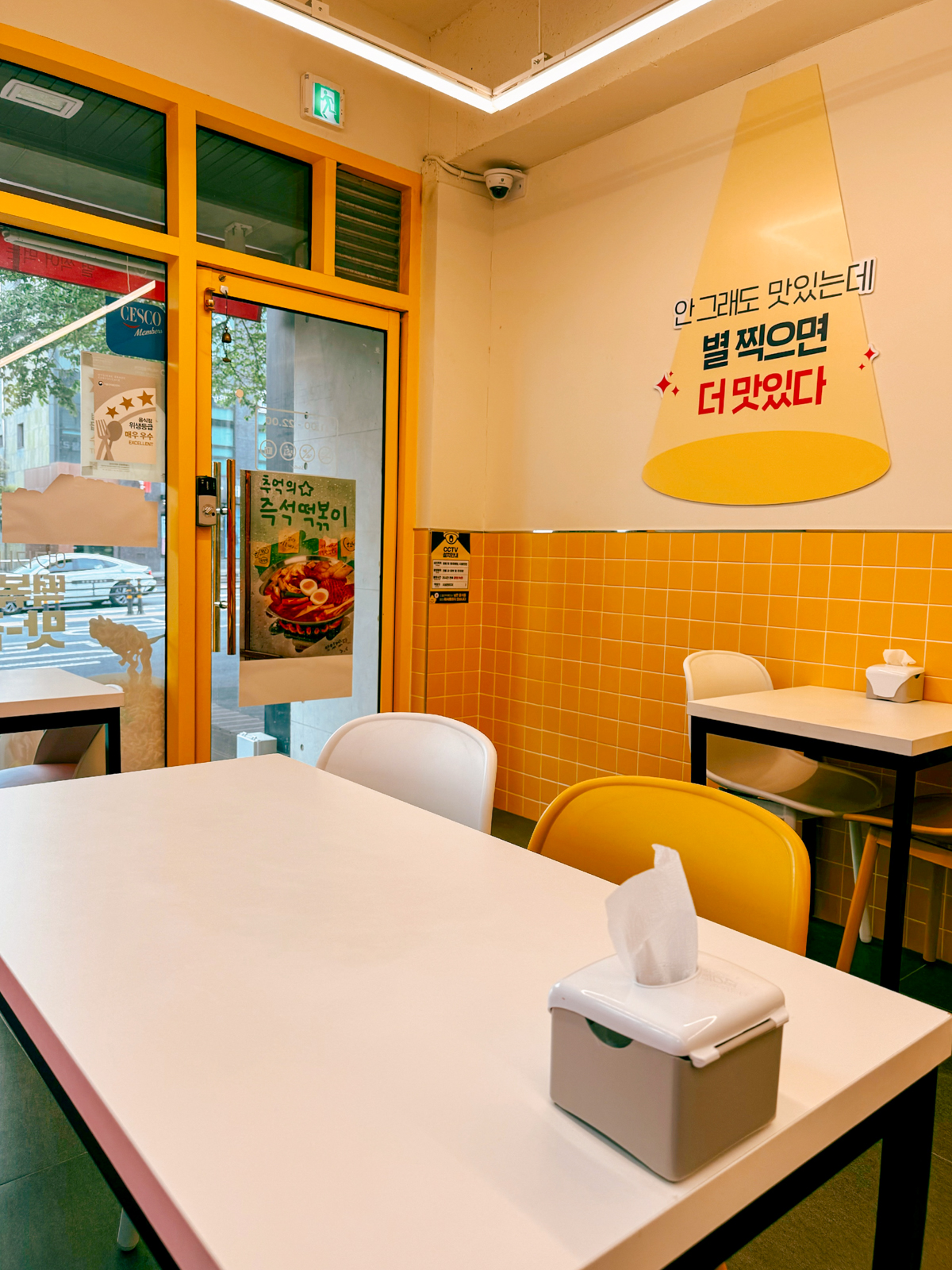 제주 스텔라떡볶이 매장은 여러 개의 테이블이 있어 떡볶이, 닭강정, 순대 등을 주문해 먹을 수 있다. 2인, 4인이 앉을 수 있는 자리로 구성되어 있으며 음료수 외 주류(소주, 맥주)는 판매하고 있지 않았다.