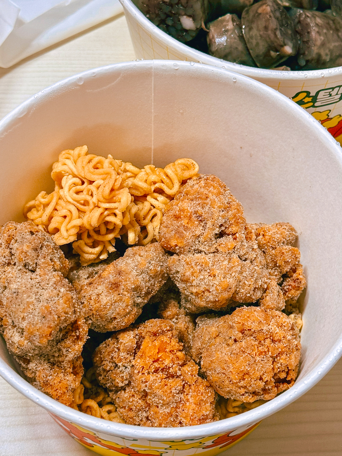 약 10분 정도 기다림 끝에 떡볶이, 닭강정, 순대 세트를 받을 수 있었고 곧바로 집에 가서 포장을 풀어봤다. 닭강정과 순대인 경우 원형 박스 위에 플라스틱 뚜껑으로 덮혀 있어 깔끔했다.