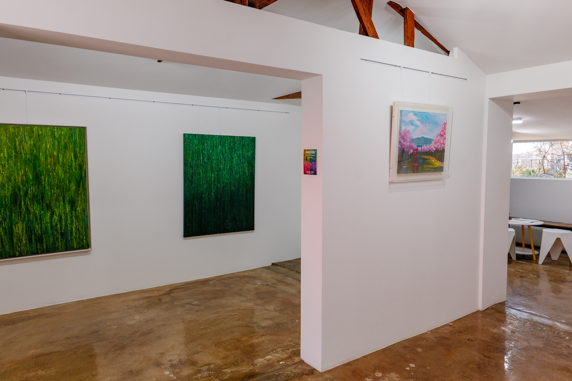 서로 다른 색상으로 시간, 공간, 우연적 행위를 표현한 갤러리 작품으로 제주도의 바다와 숲길을 표현한 듯한 느낌도 받을 수 있어 제주도 여행을 하면서 한 번쯤 구경하러 가기 좋은 장소라 생각이 들었다.
