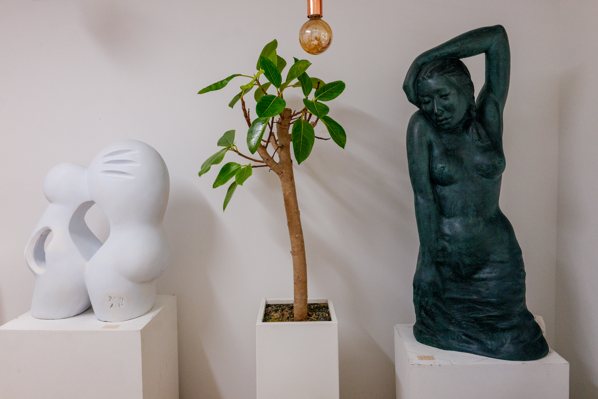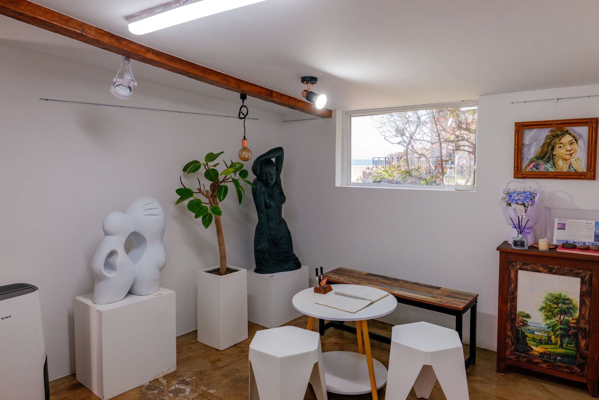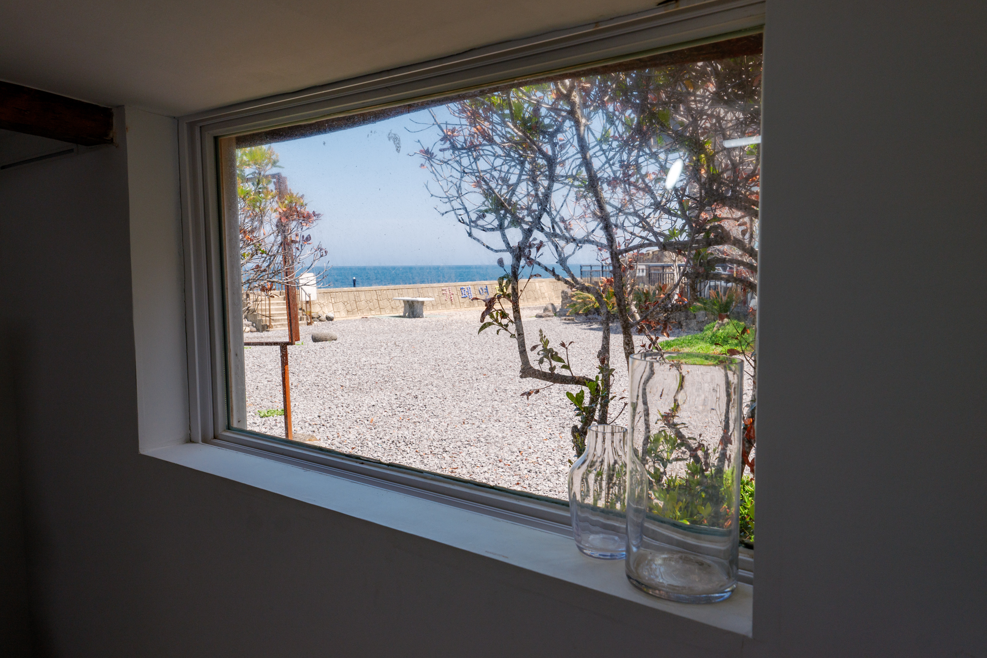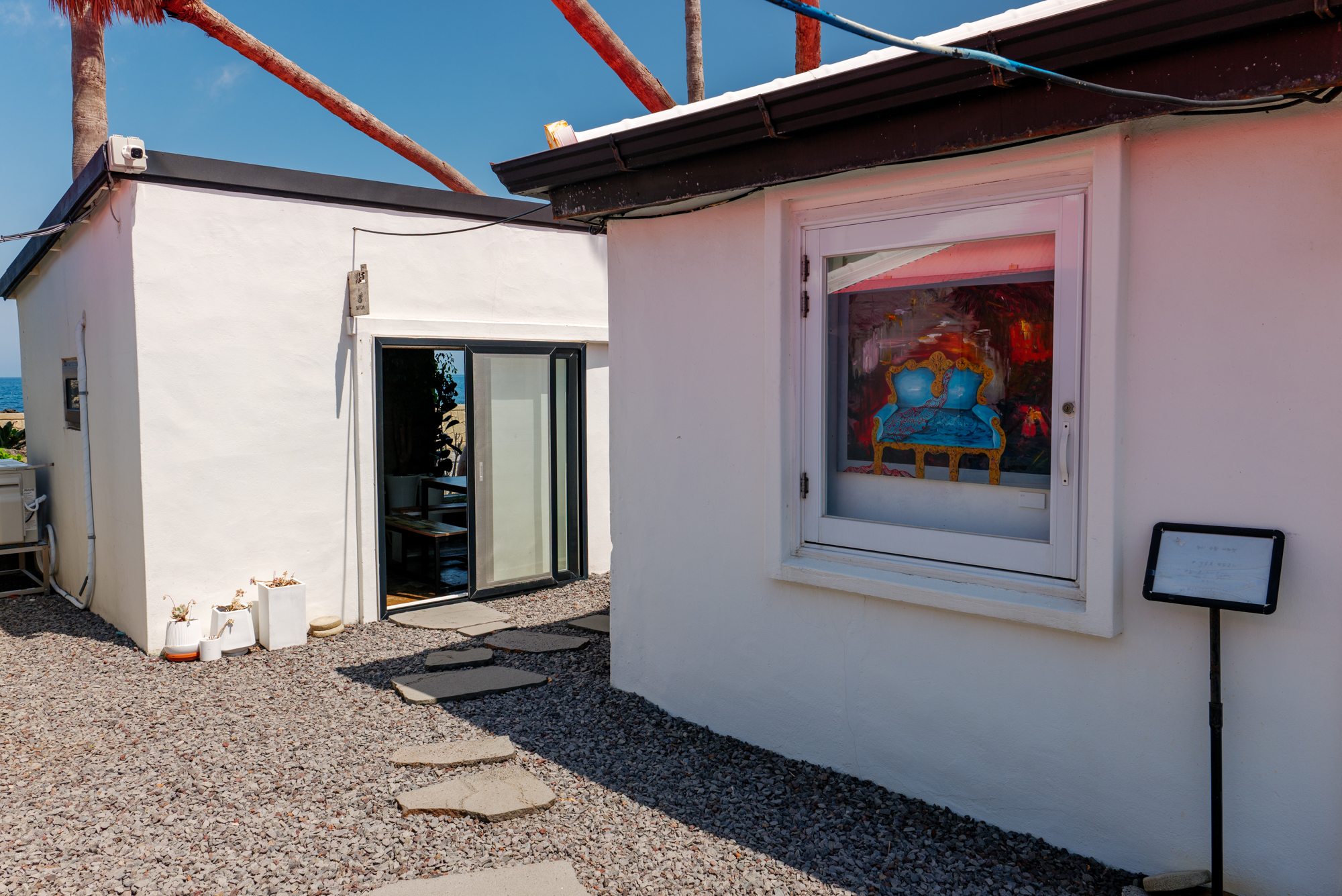 연대마을에 위치한 제주 서쪽 카페 빌레 안쪽에는 여러 조각상이 진열된 룸이 있으며 창가 너머로는 연대포구의 바다 풍경을 함께 만나볼 수 있었다.