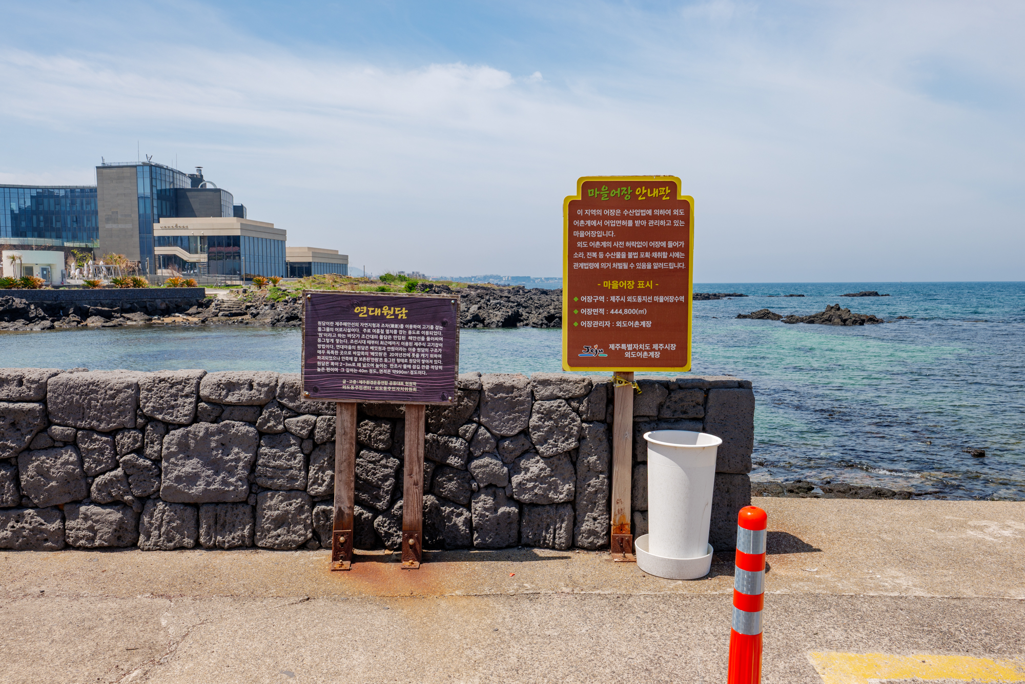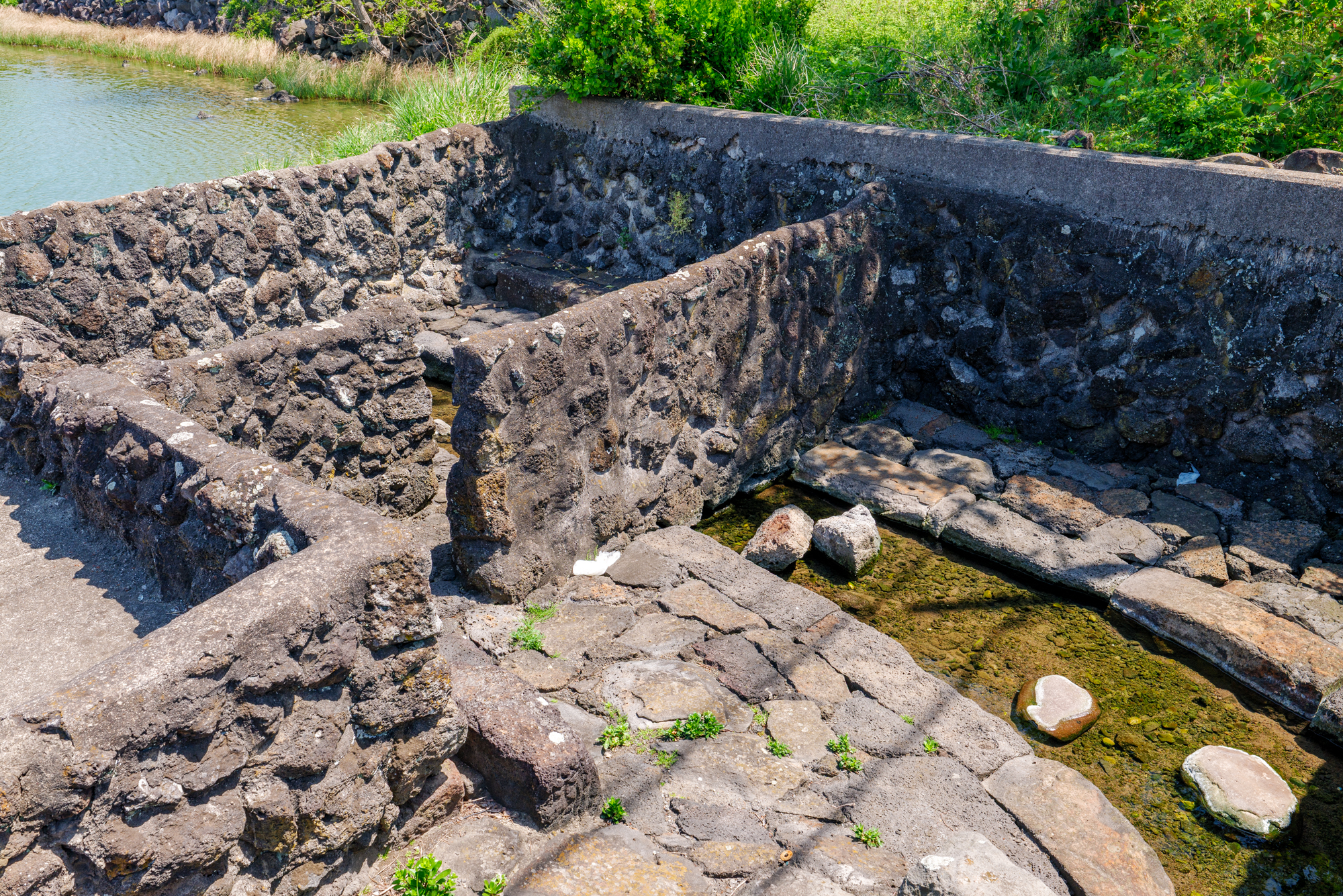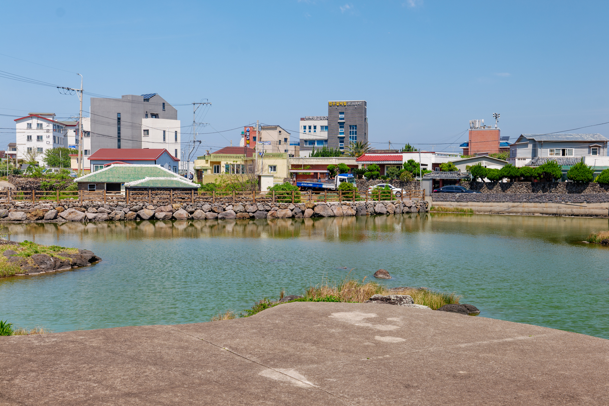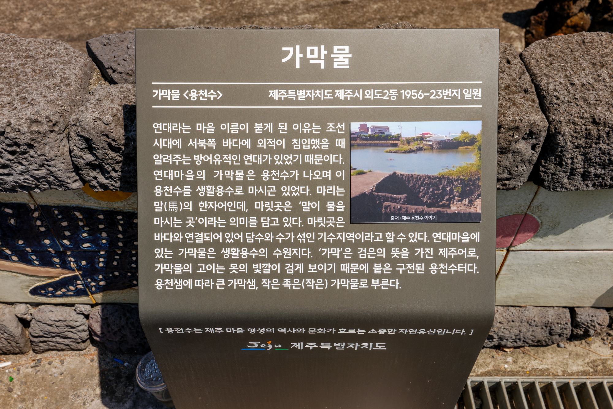 제주도 뚜벅이 여행으로 가기 좋은 연대마을, 연대포구에는 제주도 포구 마을에서 만나볼 수 있는 용천수 중 하나인 마이못, 가막물이 있다.