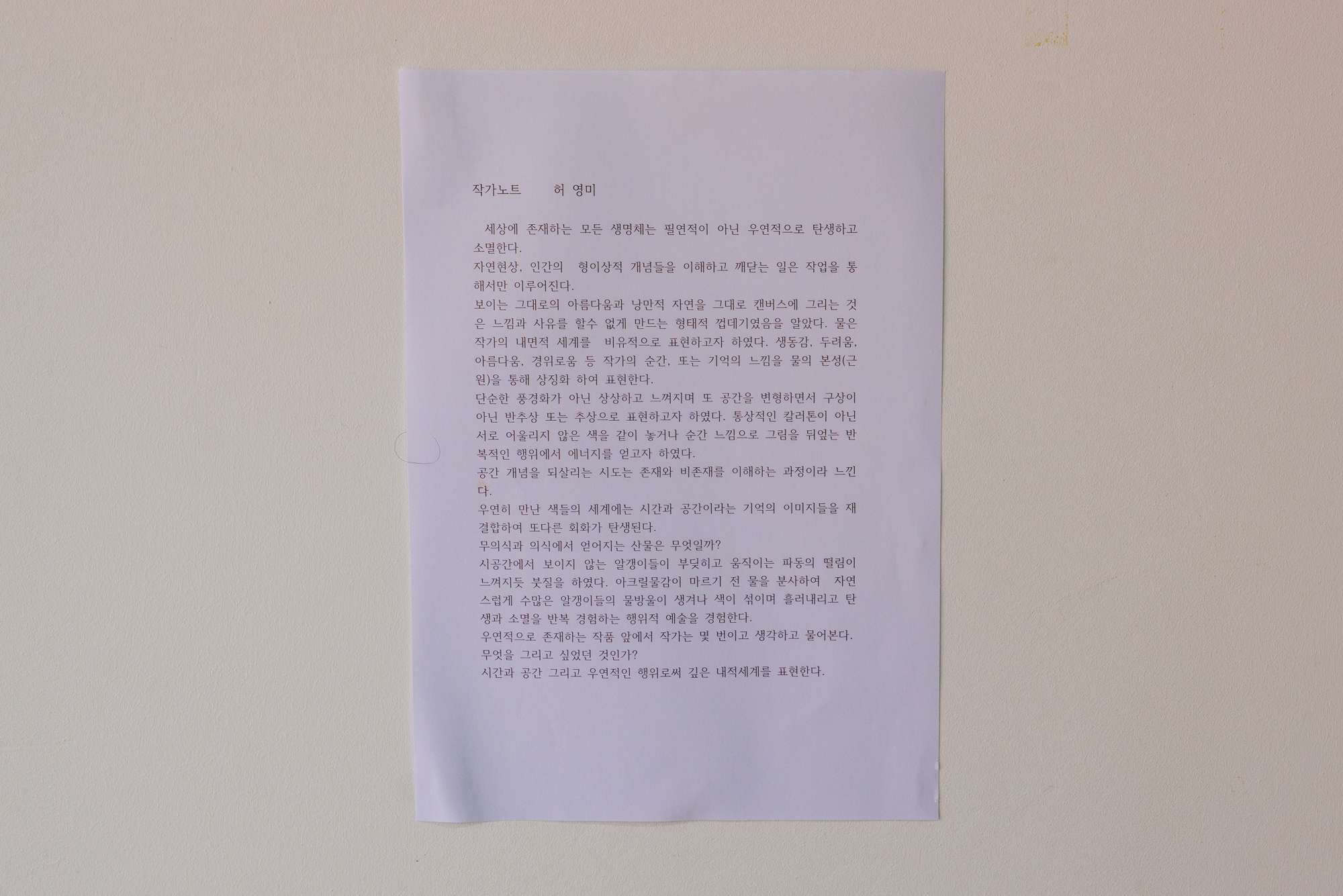 갤러리 전시가 진열된 건물과 무인카페 두 곳으로 나눠 운영되고 있었고 가장 먼저 들어갔던 갤러리 공간에는 관람 시 주의사항과 함께 이곳을 운영하는 허영미 작가의 작품에 대한 소갯말이 담긴 안내문이 보였다.