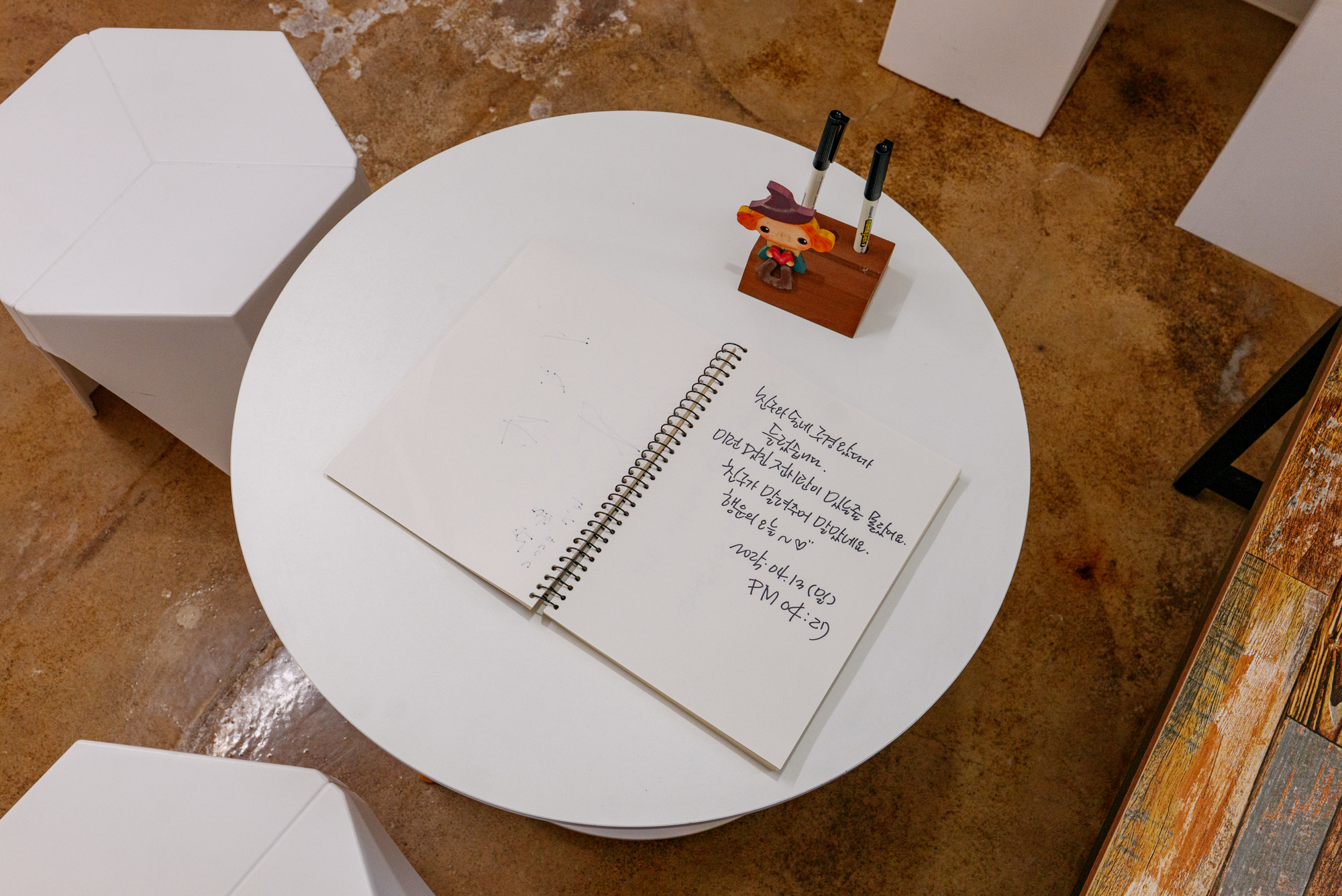 또한 이곳에 다녀간 분들이 방명록을 남길 수 있게 볼펜과 노트가 원형 테이블 위에 놓여 있었는데 아이부터 어른까지 다양한 분들이 남긴 기록을 구경하는 재미도 쏠쏠했다.